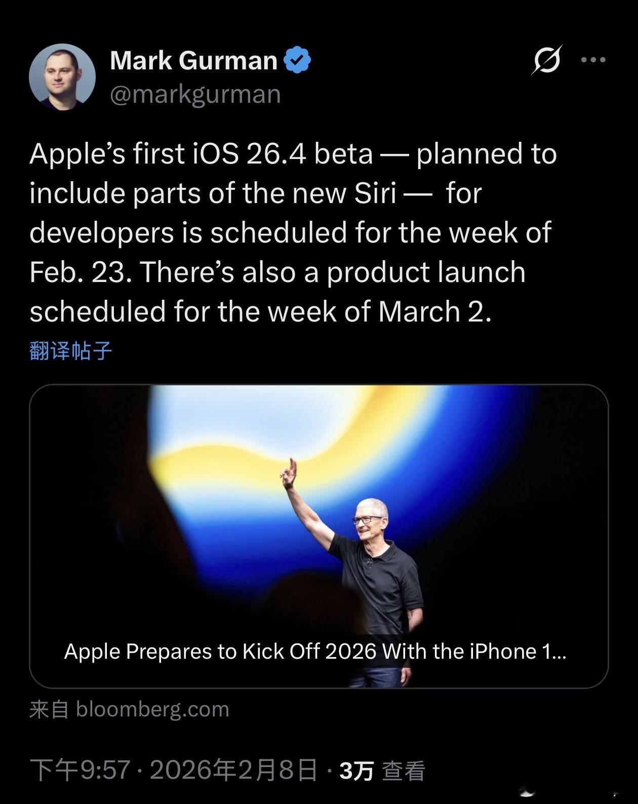 大年初二苹果终于要放终极大招了等了这么久的Gemini版Apple智能,本月就要落地!2月23日当周iOS26.4开发者测试版首发,新版Siri部分功能直接安排;3月2日当周还有新品惊喜。手持美版已经备好Gemini Pro,狠狠期待,但也平常心看待,坐等最终上线效果。iOS26iPhone17GeminiApple智能谷歌Apple数码闲聊站