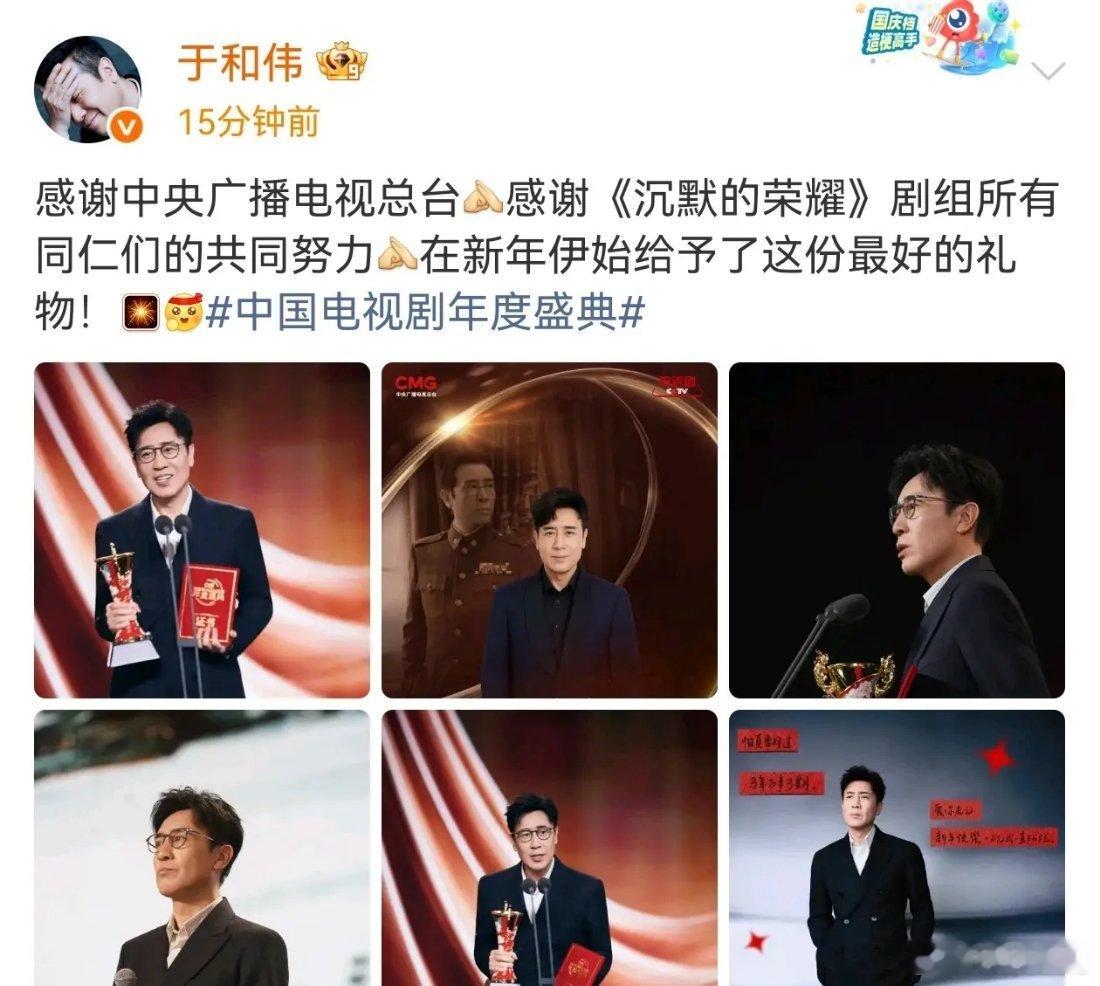 原来,在刚落幕的中国电视剧年度盛典上,于和伟凭借《沉默的荣耀》斩获重要奖项,他的获奖感言却让全网破防。领奖台上,他手捧奖杯和荣誉证书,没有大谈个人付出,而是第一时间鞠躬致谢:“感谢总台,感谢《沉默的荣耀》剧组所有同仁的共同努力,新年伊始,这是最好的礼物。” 一句话,把所有光环都还给了集体。熟悉于和伟的观众都知道,他在《沉默的荣耀》里饰演的角色层次复杂,从隐忍到爆发,每一个眼神都充满张力。