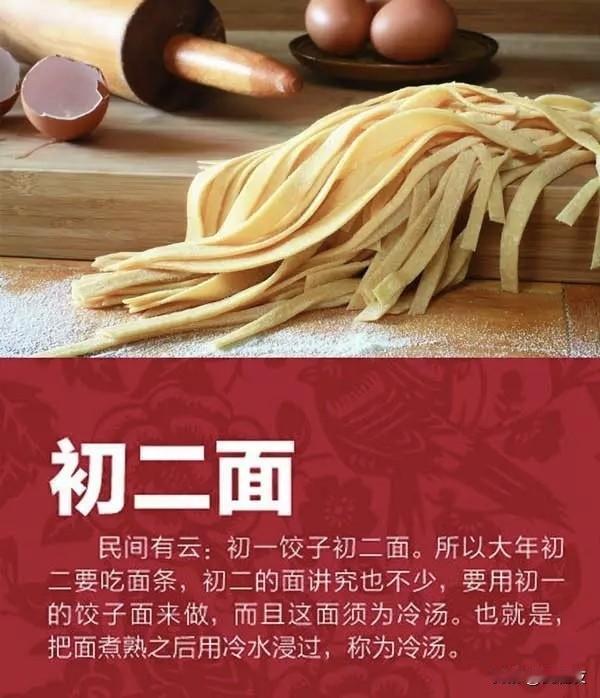 大年初二这一天,女儿要“回娘家”、夫婿同行给岳父岳母拜年,民间称“姑爷节”、“迎婿日”。“回娘家”又称“归宁”。在旧时代,“嫁出去的姑娘,泼出去的水”,民俗认为嫁出去的女儿在除夕和初一这天不能回门,回门会把娘家吃穷,只有在年初二以后才可以带着丈夫、孩子回娘家。 另外,常来常往,大年初二吃面🍜。