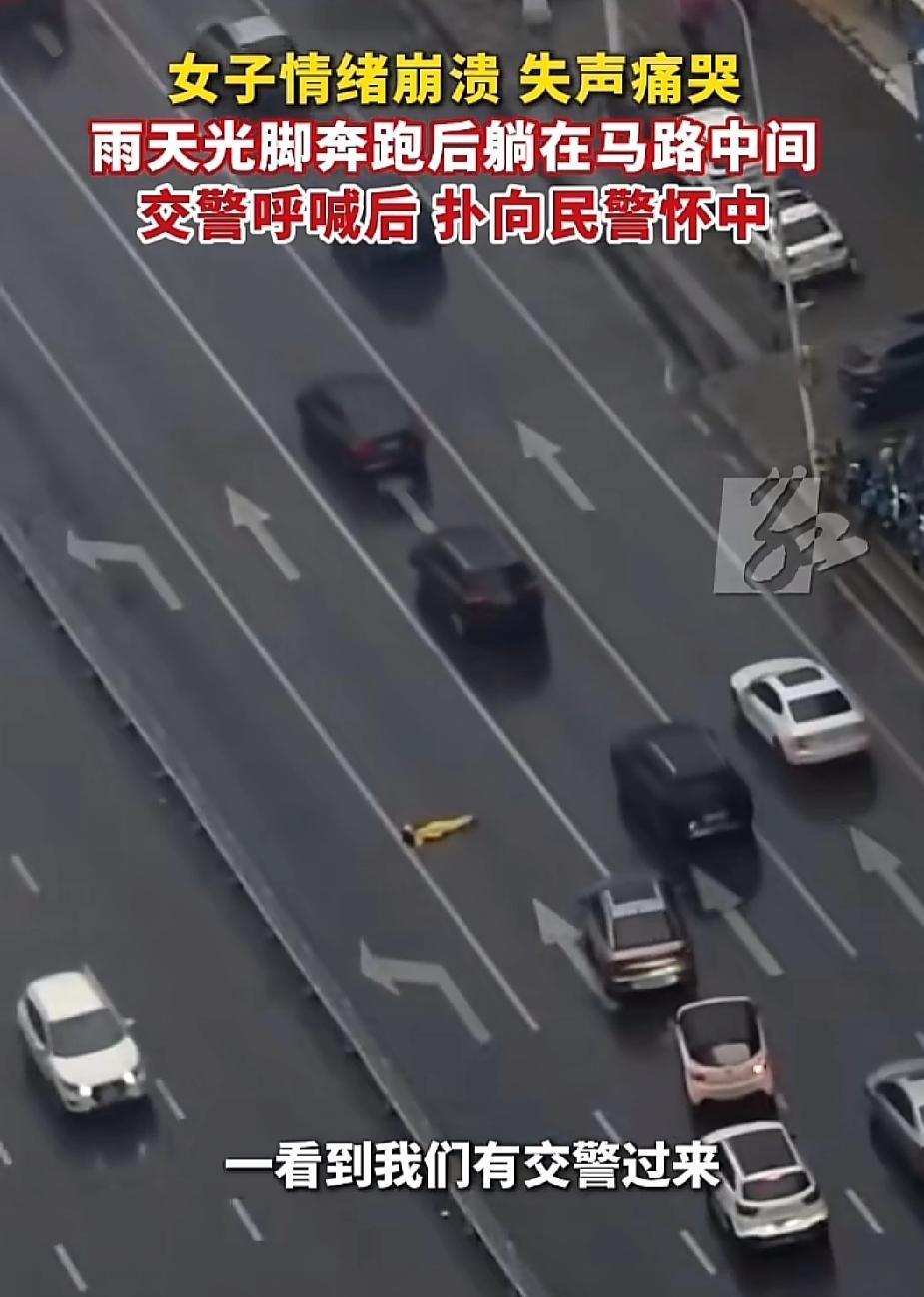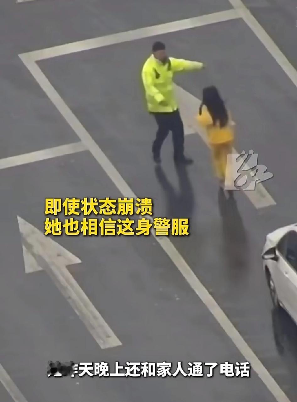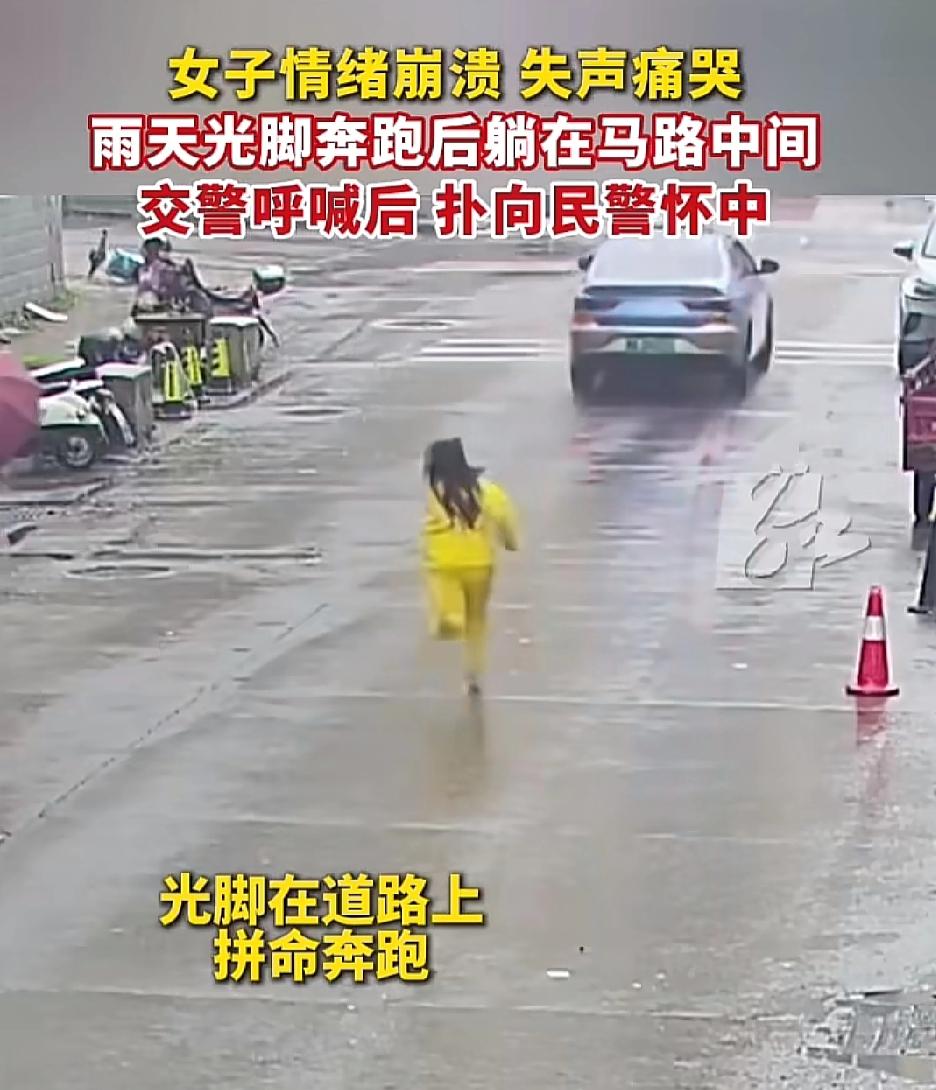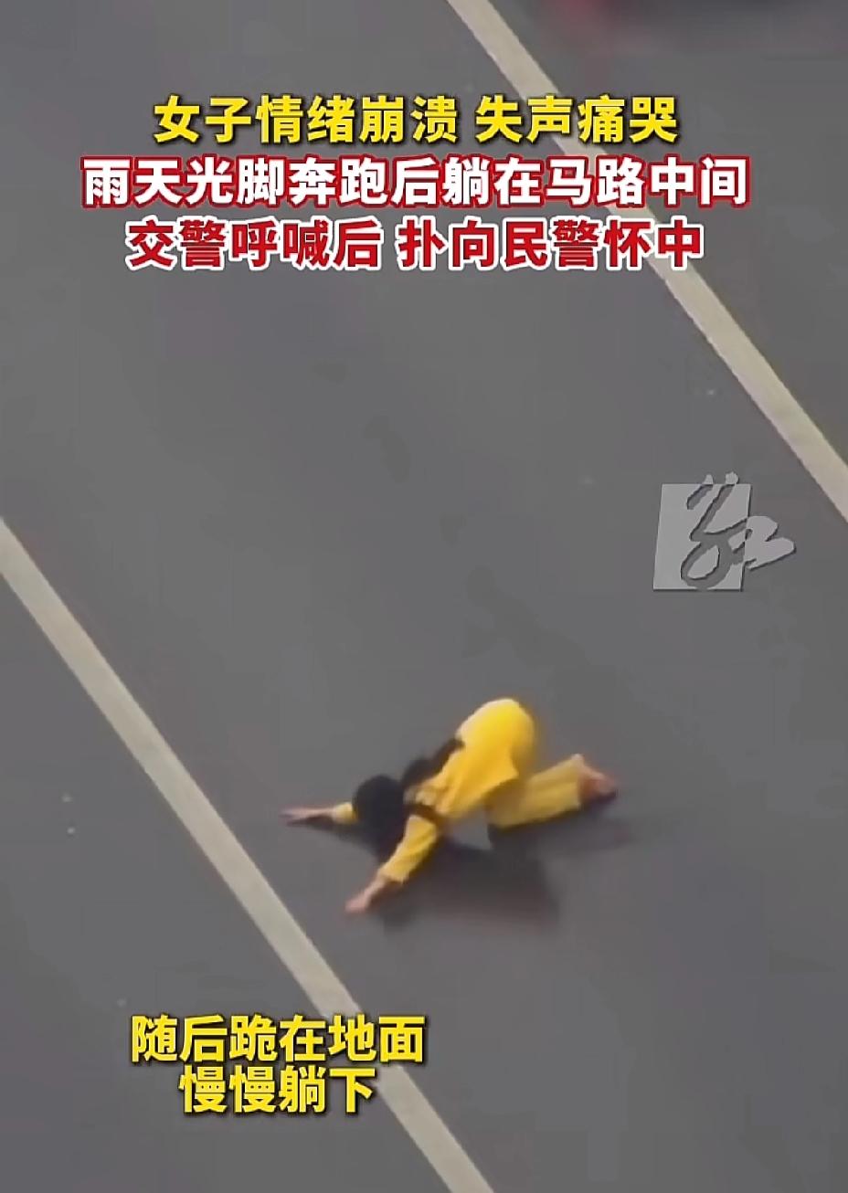 大过年的看到这个视频,一下子就流眼泪了,长沙的街头有一名穿着黄色衣服的女子,一边失声痛哭一边光着脚走在下雨的路上,不一会儿就横躺在车水马龙的路上。 她身上的黄色衣服很亮眼 车子老远就发现了这种异常,大家都小心的避开了她,有司机报了警。 没有多久,帽子叔叔就来了,女子看到帽子叔叔来了之后,就马上又站了起来,准备离开。 帽子叔叔想了解一下情况 女子看到了帽子叔叔之后 马上扑了过去 跳向帽子叔叔的怀抱 帽子叔叔伸出双手, 稳稳地接了个正着[捂脸][赞] 看到这一刻,很多人都热泪盈眶,女子肯定是受了很大的委屈,这一下是找到了亲人了,因为帽子叔叔就是我们的亲人[赞][玫瑰]