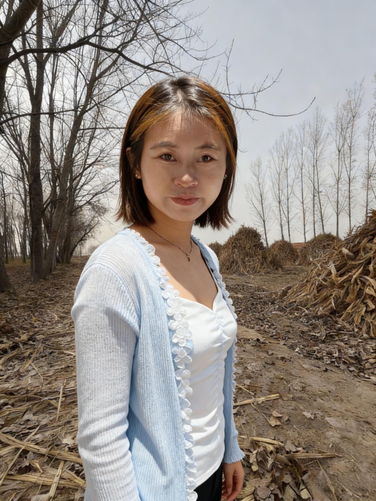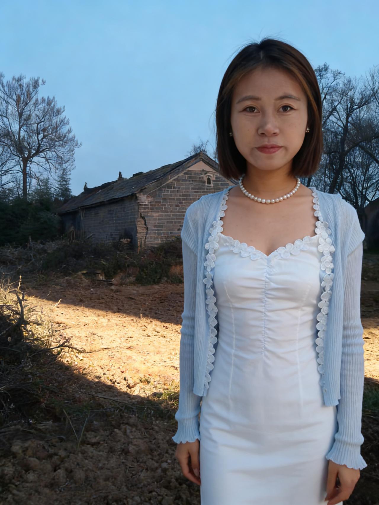 她把云的一角裁成裙裾 又借春风,织就浅蓝的披肩 在华北的旷野上站成流动的月光 ~ 玉米秸秆堆成金黄的岛屿 秃枝是天空潦草的签名 她的笑却比二月的阳光更早融化冻土 ~ 有时是马尾掠过砖墙的影子 有时是短发轻吻田埂的风 白裙掠过之处,枯草都在偷偷发芽 ~ 不必借江南的杏花妆点 不必等塞北的落雪为证 她眼底的星子,已点亮整座村庄的黎明 ~ 当她转身,旧屋的瓦檐便开始生长新燕 当她微笑,冰封的河床就听见春潮的轰鸣 旷野里的白,不是颜色,是万物苏醒的声音