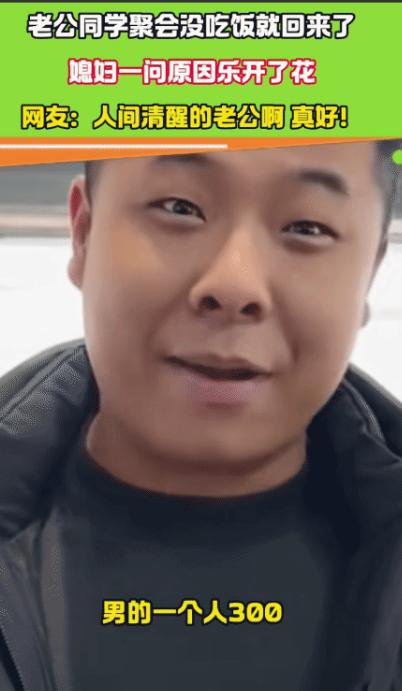 男子参加同学聚会回来,他妻子突然问他早回来的原因。他说: “男的300,女的免费。我一听,没吃就回来了,拿我当傻子啊!我拿300给媳妇买东西,还能让媳妇开心。” 李先生平时在单位里算得上是个普通人,性格不温不火,但心思细腻,特别疼爱自己的妻子小娟。那天,他的手机响了,是老同学群里的通知:“下周六搞同学聚会,地点在市中心新开的餐厅。 男士300,女士免费,大家准时啊!”李先生点开消息,看着群里同学们各种表情包和“到”“报名”“我来了”,心里也有点小激动。毕竟好几年没见老同学了,大家当年打打闹闹的趣事还历历在目。 可是李先生心里有个算盘,他先想到家里的小日子:小娟最近忙着工作和照顾孩子,几乎没时间好好吃点水果,他就想,这次聚会虽然是同学们热闹,可自己一个人花300元去吃吃喝喝,也不见得比家里那点小幸福值高。 再说,群里明确写着,“男的300,女的免费”,他心里突然蹦出一句话:这不就是“让男的花钱,女的白吃白喝”吗?李先生的眉头一皱,心想:“这算啥讲究?拿我当傻子啊?” 聚会那天晚上,李先生提前准备好家里的钥匙交给邻居,免得小娟担心孩子。他穿得干干净净,开车准时到了餐厅。 餐厅里灯火通明,已经有十几位老同学在聊天打闹,桌上已经摆好了丰盛的菜肴。有人举杯:“李先生,来来来,这边!”李先生微微笑了笑,点头致意。 可是,他一坐下就察觉到一种微妙的尴尬——桌上的酒水和餐费分配一目了然,男士300,女士免费。 桌上一部分老同学早就开始算账、抢红包,另一部分则是在讨论谁家孩子上了哪所学校,氛围很热闹,可李先生心里盘算着花300吃饭真的值吗? 再看看旁边的同学大口吃菜大口喝酒,自己其实根本没胃口,心里反而有点烦。 他突然想到家里的小娟和孩子,想着那几百块钱如果拿去给小娟买点她爱吃的水果,或者买点小零食、甜点回家,肯定能让她高兴得合不拢嘴。 心里一拍脑门,他心底那个声音响了起来:“不吃了,回家更有意义。” 于是,李先生很干脆地站起来,跟同学们打了个招呼:“我先回去了啊,大家尽兴。” 同学们都有点惊讶,甚至有人半开玩笑地说:“怎么就走了?饭菜都没上了啊!”李先生笑笑,没多解释,径直开车回家。 一路上,他路过水果店的时候顺手买了好几袋小娟平时最爱吃的水果:红心火龙果、脆甜苹果、海南芒果,还有几颗草莓,包装得整整齐齐。 回到家,他把车一停,先把水果整齐地摆在厨房台面上,又顺手给小娟泡了杯热茶。 小娟正好在客厅收拾孩子的书包,看见李先生回来,还以为他是来参加完聚会回来的。她有点好奇,问:“怎么这么早就回来了?才半个小时啊?” 李先生把手上的水果一放,笑了笑,坐到小娟身边,语气里带着几分无奈又带着满满的爱意:“这聚会,哪有什么意思?男的300,女的免费。我一听, 心里就明白了,咱不能傻乎乎地掏那钱去吃饭。我想着,咱家比那热闹有意思多了。我拿这300块,给你买你爱吃的水果,不比花在饭桌上更让你开心吗?” 小娟愣了愣,眼睛里闪过一丝感动和心疼。她看着那些新鲜水果,想起李先生开车一路回来还特地挑选的细心和用心,忍不住笑了出来:“你呀,总是比我想得多。” 孩子从房间里跑出来,看到水果也高兴得跳起来:“哇!爸买了好多水果!”李先生弯下腰,摸了摸孩子的头:“你妈喜欢的,我都带回来了。” 这一幕正巧被小娟发到朋友圈里,写着:“有人为了家里的温暖,宁愿半途而返,这就是我最爱的丈夫。”没想到,这条动态很快就被转发,评论区炸开了锅。网友们纷纷留言: “真是人间清醒,花钱有道理!” “有些男人,就是懂得什么才是家里最重要的幸福。” “别的聚会热闹,家里的笑容更值钱。” 还有人说:“这才是会过日子的男人,不跟那些形式玩心机。” 有人还调侃:“以后聚会都该问问:男的300吗?”