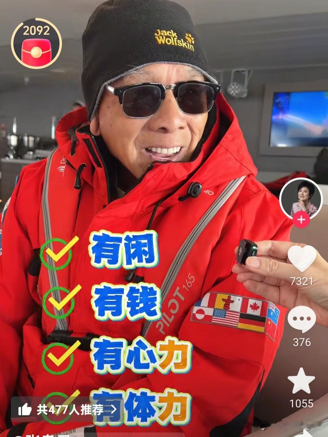 90岁了依然可以去南极。张灵泉在南极的游轮上认识了一个90岁的老爷子,问为什么90岁了还要去南极?老爷子说,觉得人这一生嘛,应该多去看看外面的世界。张灵泉说四五十岁的同龄人,玩了阿根廷和南极17天已经觉得很累了。但是老爷子已经玩了南美五国30多天了!渡过被誉为“魔鬼西风带”的德雷克海峡,有一半的人都吐得起不了床,老爷子啥状况?他表示只是稍微有点不适,也没吐,吃饭照常,其它一切都好。而且每次坐冲锋舟登陆探险,老爷子都积极参与。他说这样的强度不大,而有点强度的算是登马丘比丘,毕竟,那是高海拔攀登。 因此,人一定要趁年轻,多出去看看外面的世界,尤其是高海拔地区,人老了可以走得更远,但是未必攀爬得更高。 年轻的时候有时间,但是没有钱;中年的时候有钱,但是没有时间;老年的时候,有钱有时间,但是体力不行了;即使体力还可以,但是未必有心有胆去追逐年轻时的梦想了。90岁的老爷子,还能将“有时间、有钱、有体力、有心”这四要素集合于一身,付诸行动实现人生终极梦想,不得不说,的确是万里挑一、超凡脱俗的“男神”了。 你我的90岁,又会是什么样子呢? 南极之行 南极 南极村旅行 南极路线 豪华南极旅游 南极故事 南极旅行禁忌 张灵泉 南极故事 南极旅行费用