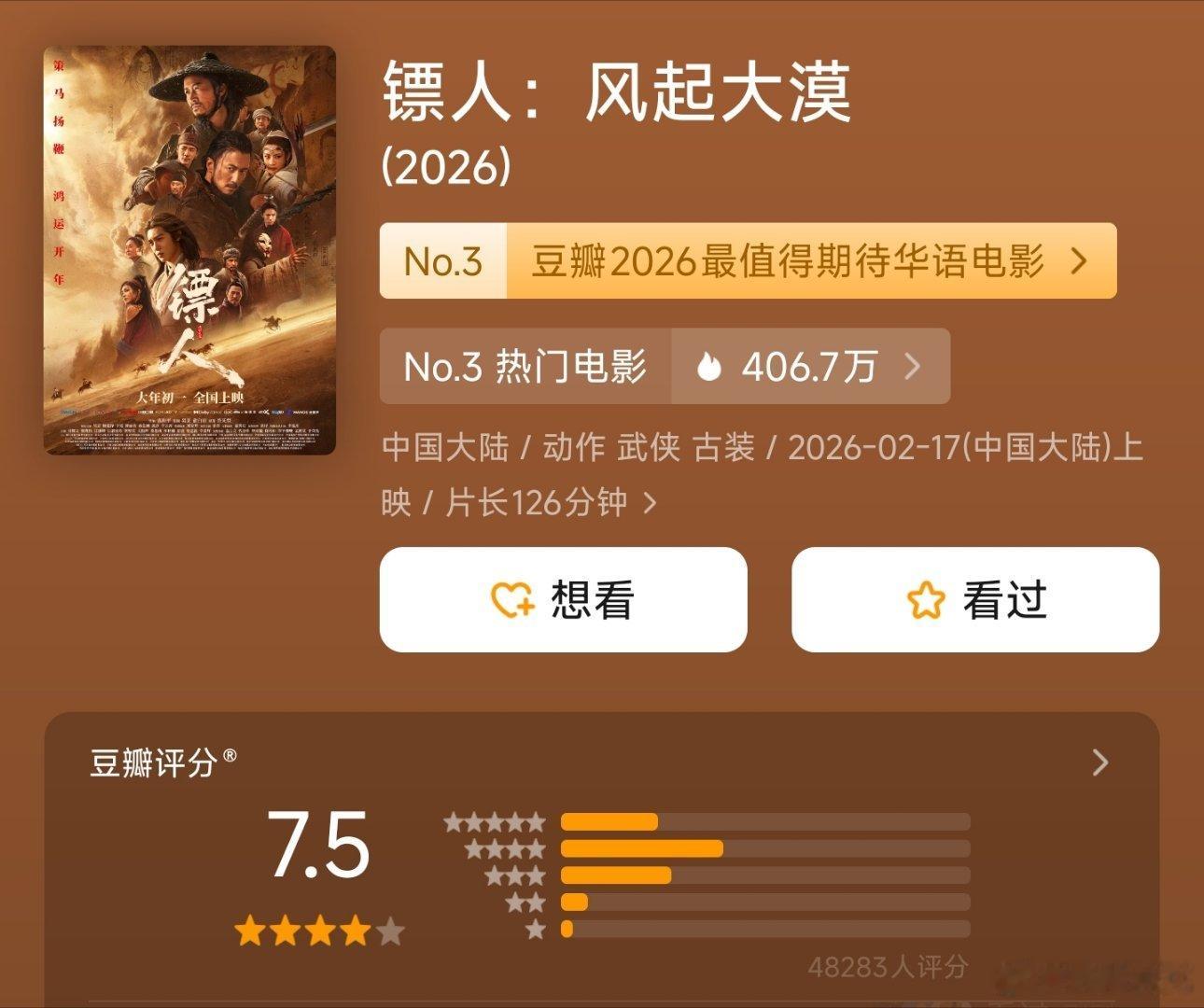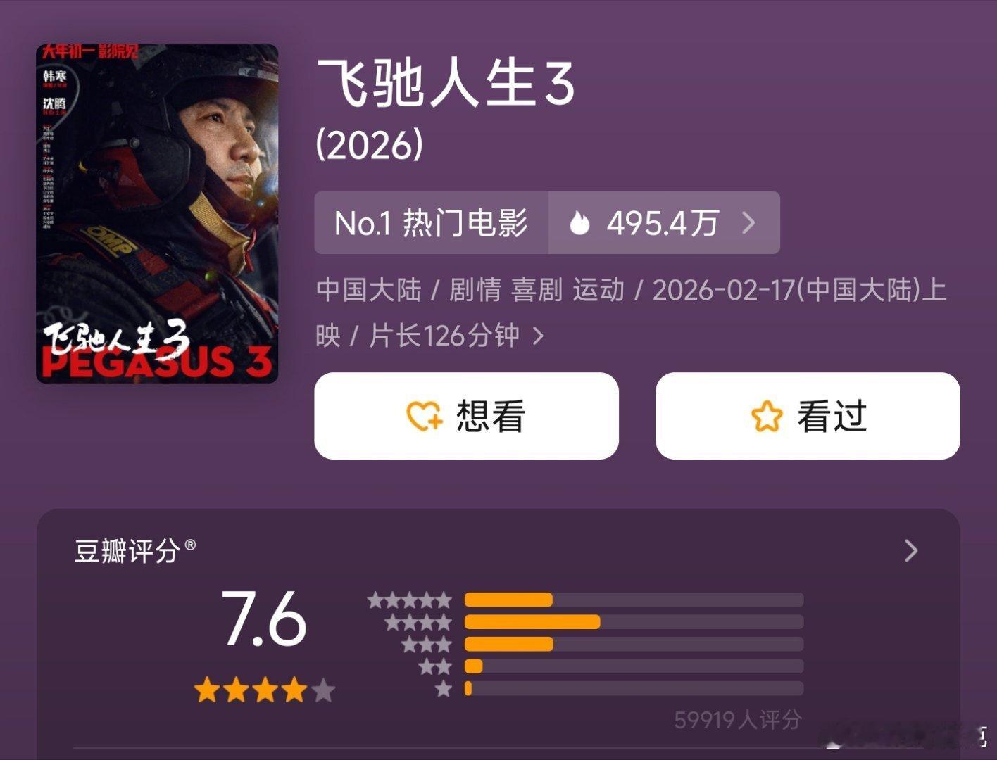 三部春节档电影豆瓣评分:《飞驰人生3》7.6分,全面领先。《镖人》7.5分,分也不低,但票房很惨。《星河入梦》7.0分,票房倒1,评分也暂倒1。