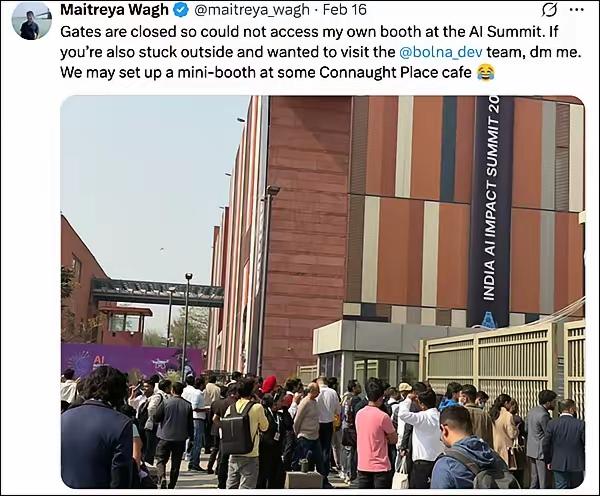 雄心勃勃办AI峰会,第一天就差评如潮…印度致歉 ​当地时间2月16日,为期五天的印度人工智能影响力峰会拉开帷幕。然而,据英国广播公司(BBC)、路透社等外媒报道,这场意在彰显印度在人工智能(AI)领域挑战中美科技巨头雄心的盛会,首日就因组织混乱、后勤不畅、展台产品被盗而遭到与会者吐槽,网上铺天盖地一片批评声。 这场顶着“全球南方首个顶级AI峰会”头衔的活动,由印度电子和信息技术部亲自主办,主题定为“人、进步、地球”,官方对外喊出要打造全球规模最大的AI交流平台。莫迪政府为这场峰会筹备近一年,拿出IndiaAI使命的千亿卢比投资成果做背书,还邀请了谷歌、OpenAI、英伟达等全球科技巨头高管出席,试图向外界证明印度有能力站上全球AI赛道的核心位置。 新德里国际会展中心被临时改造为峰会主场馆,主办方预估全程将有25万人到场,首日就涌入超7万名参会者,这份热度原本是印度AI产业吸引力的最好证明,却被彻底拉胯的组织能力砸成了闹剧。 我看过不少参会者的现场反馈,印度本土AI初创公司NeoSapiens的联合创始人Maitreya Wagh,带着团队筹备半年,带着自研的AI可穿戴设备赶赴展会,还提前支付了展位费、差旅费与物流费。他早上九点就到场馆入口,发现数字签到系统全程宕机,实体通行证迟迟未发放,上千人挤在入口处毫无秩序。 场馆大门从中午12点一直封闭到傍晚6点,展商被拦在外面无法进场,记者连明确的采访通道都找不到,只能在人群里反复询问工作人员。 进入场馆后更让人崩溃,全场没有清晰的区域指引牌,参会者找展位全靠碰运气,会场Wi-Fi完全无法使用,论坛区座位严重不足,很多远道而来的嘉宾只能站着听完分享。 最让企业无法接受的是展品安全得不到保障。Maitreya Wagh在社交平台无奈发声,团队带去的AI可穿戴设备在号称“高安保等级”的场馆内被盗,找现场安保求助,对方只敷衍表示会核查,全程没有任何有效处置。 多家参展企业遭遇类似情况,小型开发板、原型机、传感器接连失窃,主办方迟迟拿不出解决方案,只能任由企业自行承担损失。 海外参会者的体验更是糟糕,来自东南亚的科技投资人提前三个月预定配套酒店,最终被安排在距离场馆40公里的郊区,早高峰堵车耗时近两小时,赶到会场后发现预定展位被占用,协调半小时都找不到负责人员。 负面舆论很快在全网发酵,参会者的实拍视频、吐槽文字冲上印度社交平台热搜,印度AI峰会混乱的话题阅读量短时间破亿。大家质疑的不只是现场的杂乱,更是印度政府的承诺与执行之间的巨大落差。 印度近年不断加码AI产业布局,推出五层发展框架,砸重金建设数据中心,吸引微软、谷歌投入百亿美元布局AI基建,本土也成长出一批聚焦医疗、农业、语言AI的初创企业,技术层面确实在快速追赶。 可大型国际活动的统筹、人流管控、后勤保障、安保服务这些基础环节,完全跟不上产业发展的速度,过往举办国际展会、赛事时的组织短板,在这场高规格AI峰会上被无限放大。 当地时间2月17日,印度电子和信息技术部长瓦伊什瑙公开向所有参会者致歉,承认首日存在人流管控失当、流程混乱、后勤缺位等问题,承诺立即增派工作人员、修复签到系统、补充餐饮物资,同时成立专项小组追查被盗展品。官方还强调这场峰会是全球规模最大的AI盛会,参会热度远超预期,后续会全力优化体验。 这样的补救没能挽回口碑,多家初创企业直接宣布撤展,部分海外嘉宾取消后续演讲安排,原本计划的合作对接环节被迫缩减规模。 印度的AI野心从来都不是空谈,庞大的程序员群体、活跃的初创生态、全球巨头的资本加持,都让它具备成为全球AI重要参与者的底气。可一场国际峰会的溃败,直白暴露了软实力与硬目标的不匹配。 科技产业的竞争从来不止于技术与资本,更在于稳定的产业环境、靠谱的服务保障、细致的治理能力。当参展企业连基本的财产安全、参会便利都无法获得,再宏大的战略规划、再高调的宣传造势,都难以赢得全球合作伙伴的信任。 各位读者你们怎么看?欢迎在评论区讨论。