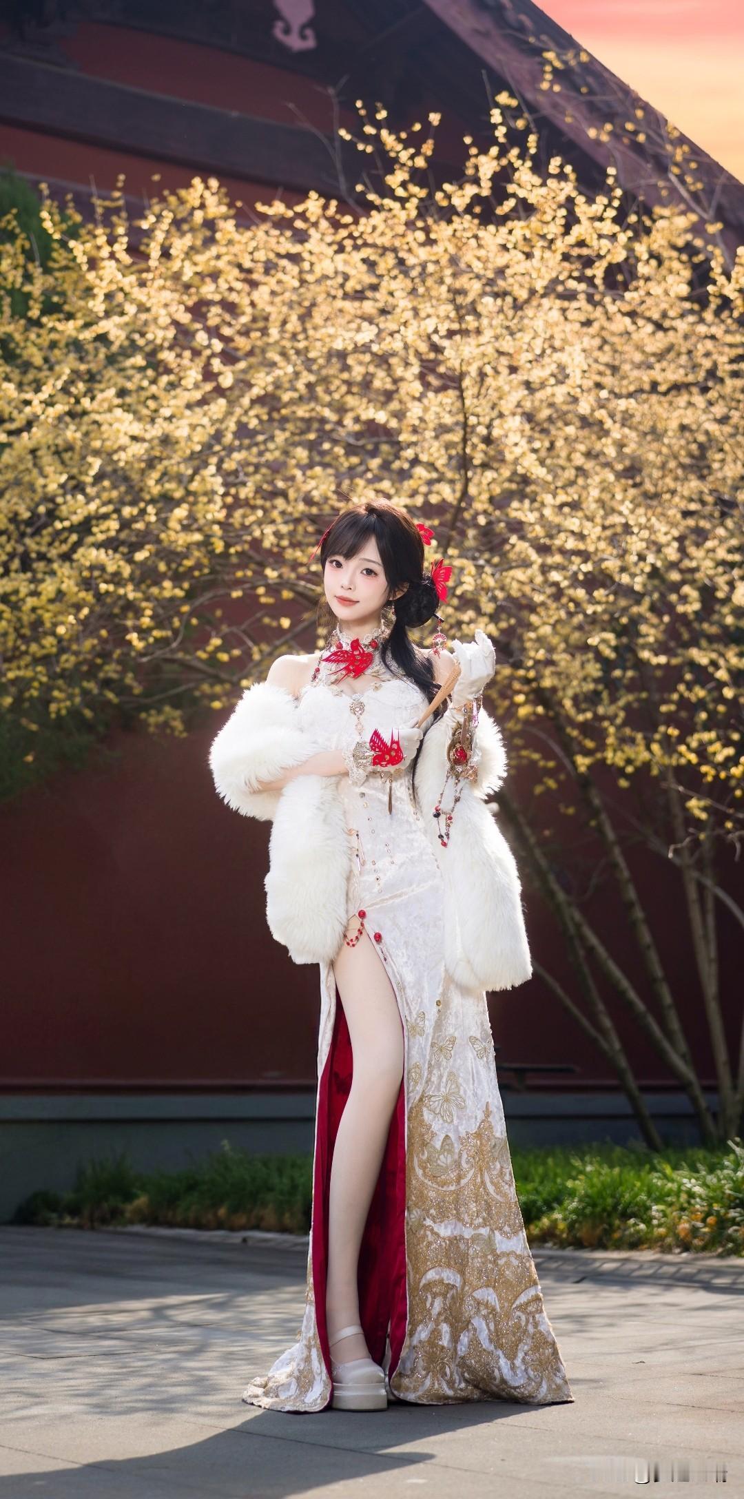 新年新气象,红裙与皮草的完美结合。