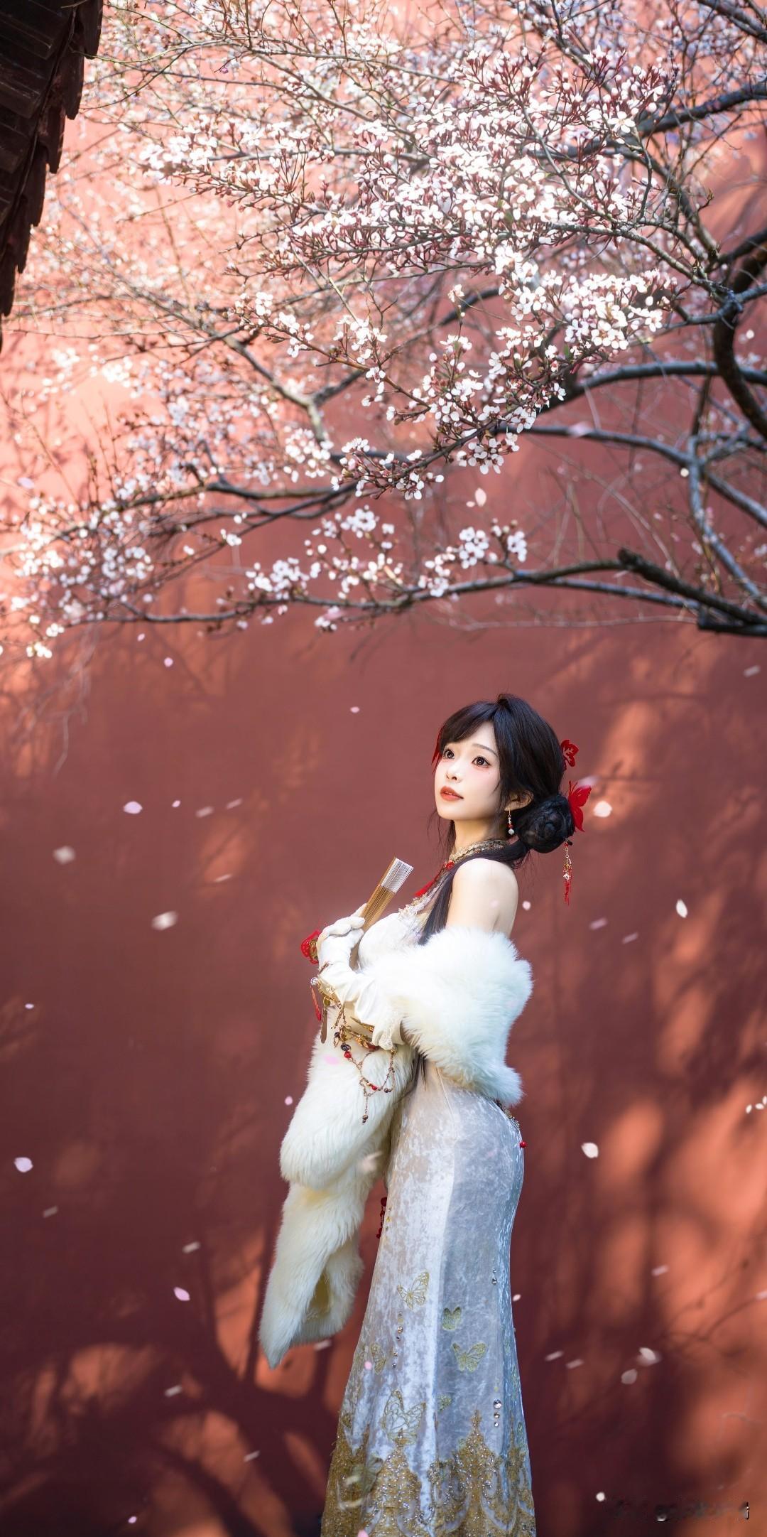 粉嫩的旗袍少女与花共舞,梦幻般的春日时光。