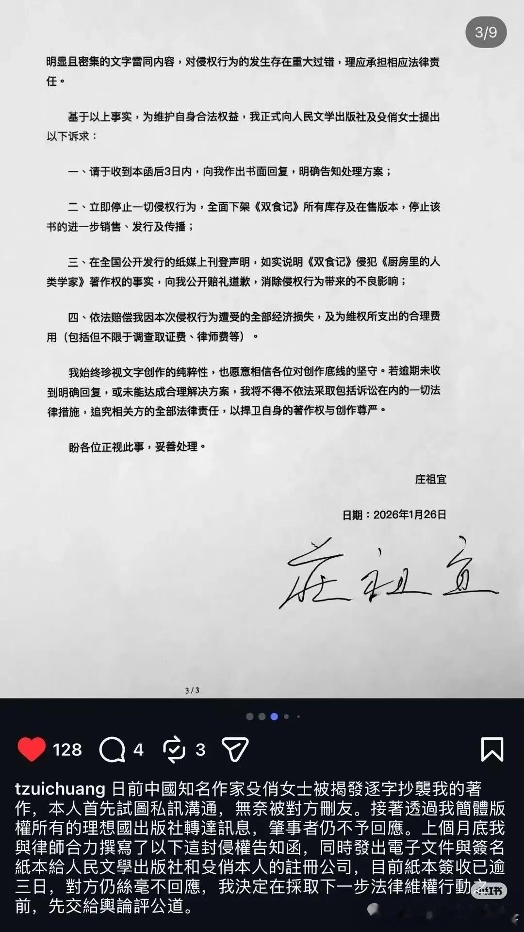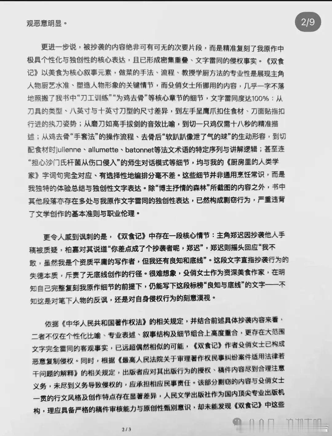最后,她与律师写了正式侵权告知函,白纸黑字,签名盖章,寄给人民文学出版社和殳俏的公司。