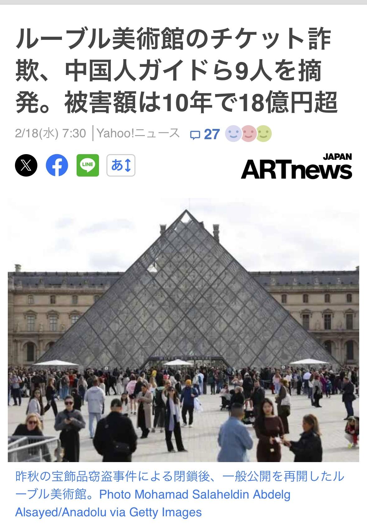 2月10日,巴黎检察官宣布,他们逮捕了9名与卢浮宫大规模门票诈骗案有关的人员。该事件的调查始于2024年12月。起因是有人举报两名经常出入卢浮宫的中国导游反复使用同一张门票带中国旅行团入场。随后,其他导游也开始受到欺诈嫌疑。据信这起诈骗案在长达10年的时间里给博物馆造成了1000万欧元的损失。 被捕的九人包括导游、两名博物馆工作人员和一名涉嫌主谋。检察官迄今已查获超过95.7万欧元现金和6.7万欧元外币,并冻结了一个余额超过48.6万欧元的银行账户。警方还查扣了三辆汽车和几个保险箱。 当局通过监视和电话监听证实,这些导游确实存在重复使用门票和欺诈行为,以逃避支付导游费。两名涉嫌参与此案的博物馆工作人员收受了导游的现金,以换取他们对欺诈行为的默许。 欺诈行为已持续了约10年。嫌疑人每天允许多达 20 组人进入该设施,部分资金据称被用于投资法国和阿拉伯联合酋长国迪拜的房地产。