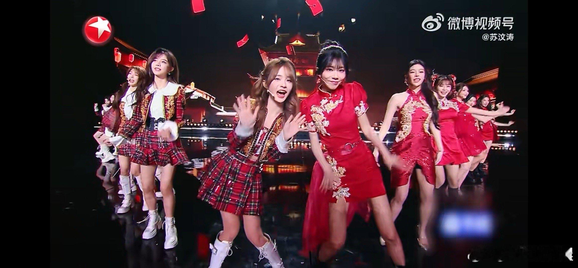 谁点的内娱女团battle果然内娱女团同台就是好看!两大女团唱跳《发财发福中国