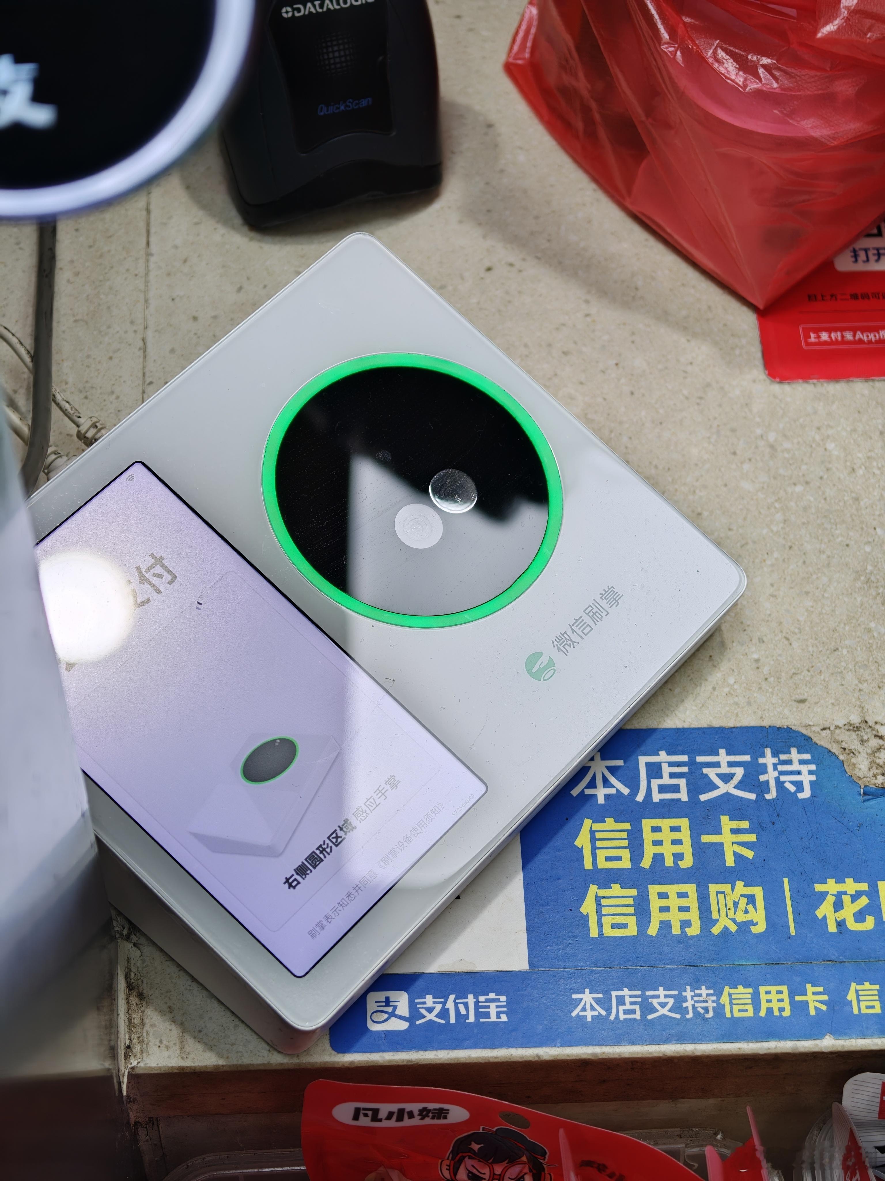 微信掌纹支付这个好像不多见~支付宝碰一碰现在倒是很多~