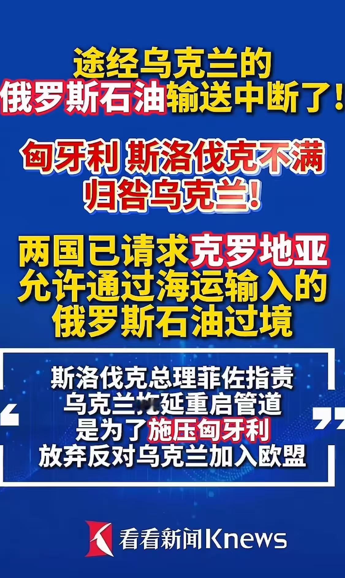藏不住了!乌克兰断油不要钱,欧盟两国直接炸锅 真敢玩! 乌克兰连过境费都不要了 硬掐断俄罗斯输欧石油管道 匈牙利、斯洛伐克直接破防 这俩国家 在欧盟里本来就是“刺头” 死活不肯跟俄能源脱钩 现在直接被逼到墙角 先看要命的数据 斯洛伐克96%石油靠俄油 匈牙利85%油气靠俄罗斯 相当于全家口粮被人掐断 美国页岩气有多坑? 俄气每立方0.51欧元 美气直接干到1.08欧元 贵出一倍还多 老百姓取暖费、工厂成本 直接翻倍 乌克兰算盘打得响 以为拿捏欧洲 结果玩脱了 匈、斯转头找克罗地亚 走海运绕开乌克兰 宁肯绕路 也不买美国高价气 欧盟双标更搞笑 一边喊制裁 一边给两国开豁免 嘴上主义 全是生意 俄乌打到现在 最惨的不是战场 是这些夹在中间的欧洲小国 被当棋子还得自己买单 你觉得,这俩国家最后会妥协买美气吗?匈牙利欧盟 欧盟能源新政