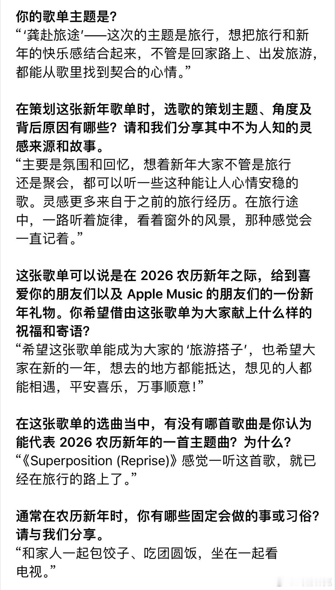 龚俊Apple Music2026年新年歌单发布,近十年唯一受邀的大陆演员,还有总部点赞。