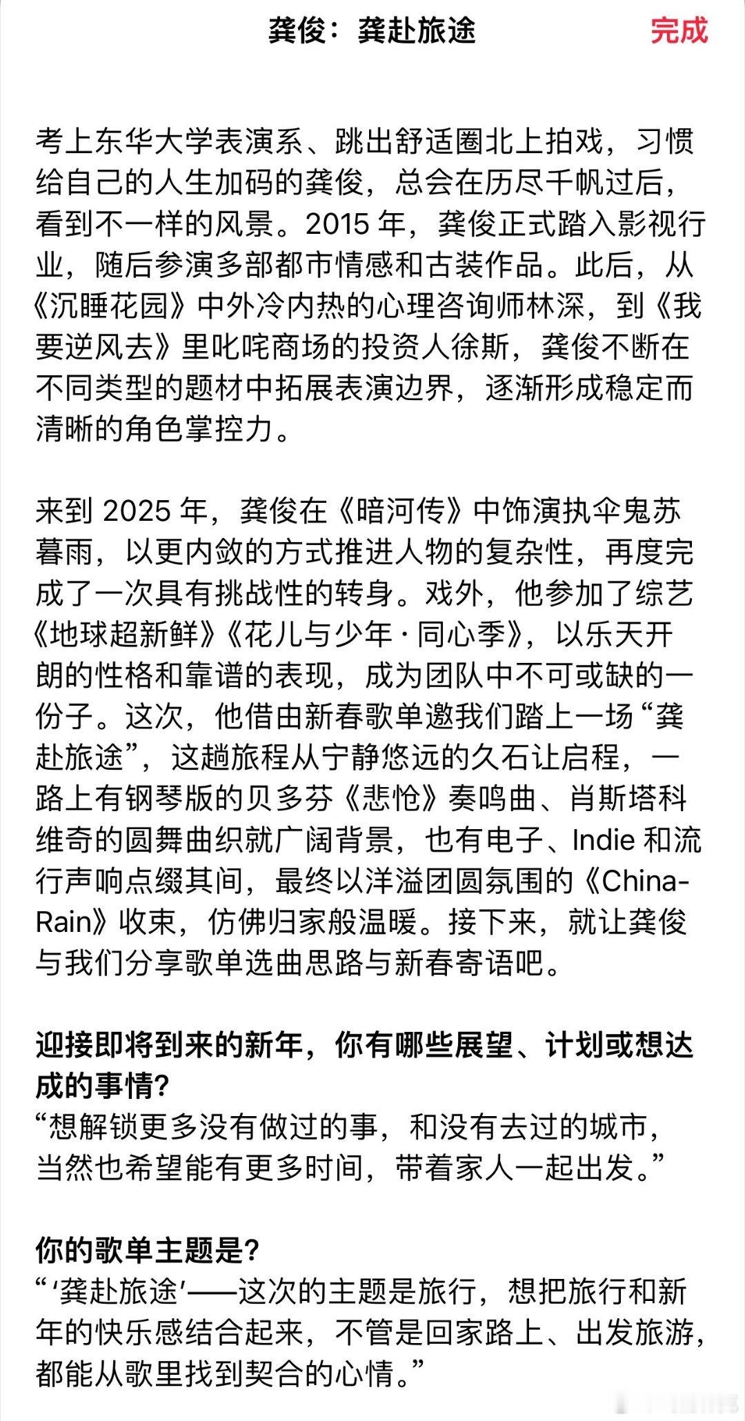 龚俊AppleMusic2026年新年歌单发布,近十年唯一受邀的大陆演员,还有