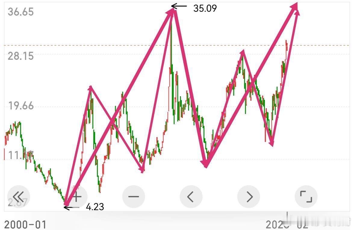 上证指数自4190已调整20多个交易日,不少市场参与者对当下市场感到迷茫,没有方向,对此不妨看看平均股价的走势。从图一来看,这里的回打,其实属于突破前高28.39之后的一次回踩。虽然目前时间、空间都还没到,但可以预见的是,结束之后将重回继续震荡攀升的节奏。往上压力位先看32附近,也是最基本的目标。至于最终能否走出图二所示情形,去挑战历史高位35,得走一步看一步。单纯从技术层面和大的结构来看,还是有这个条件。总体来看往上还有空间,只是大小多少的问题,说结束还为时尚早。