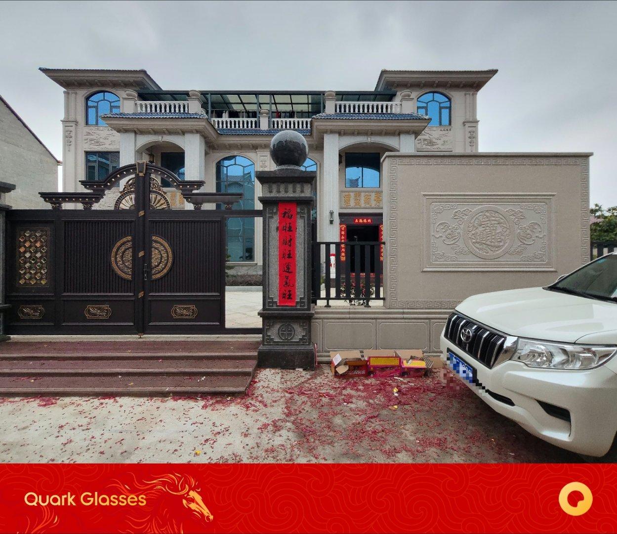 昨天逛村子看到了一家很气派的房子~我老丈人说兄弟俩一起建的,花了 300 多万,里头的装修就不知道了,村子路上两边的灯都是这对兄弟捐的。