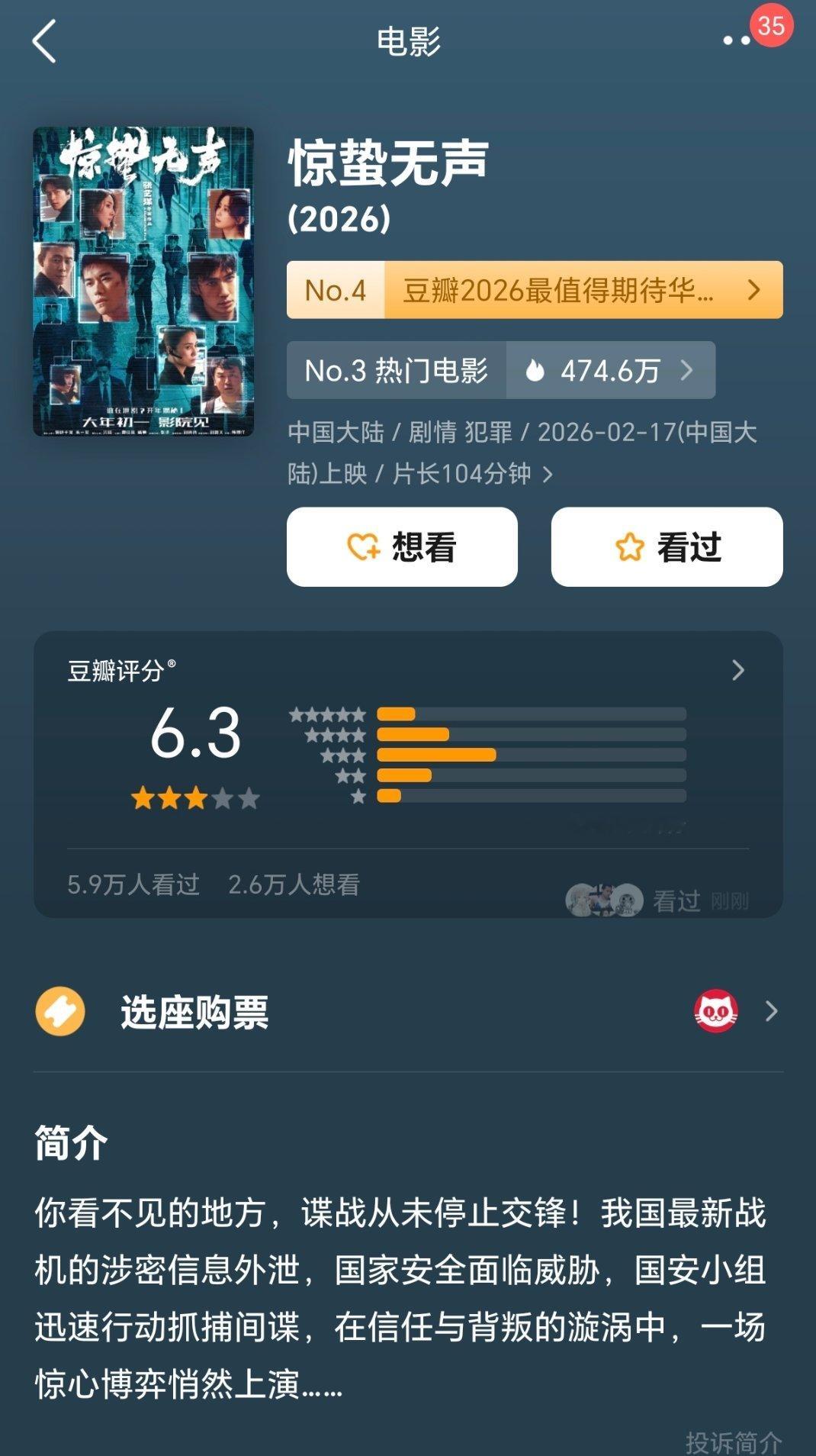 昨天惊蛰无声买好多电影大v红稿,说必看今天镖人开始发力,买了不少非电影大v四部开分,惊蛰无声最低