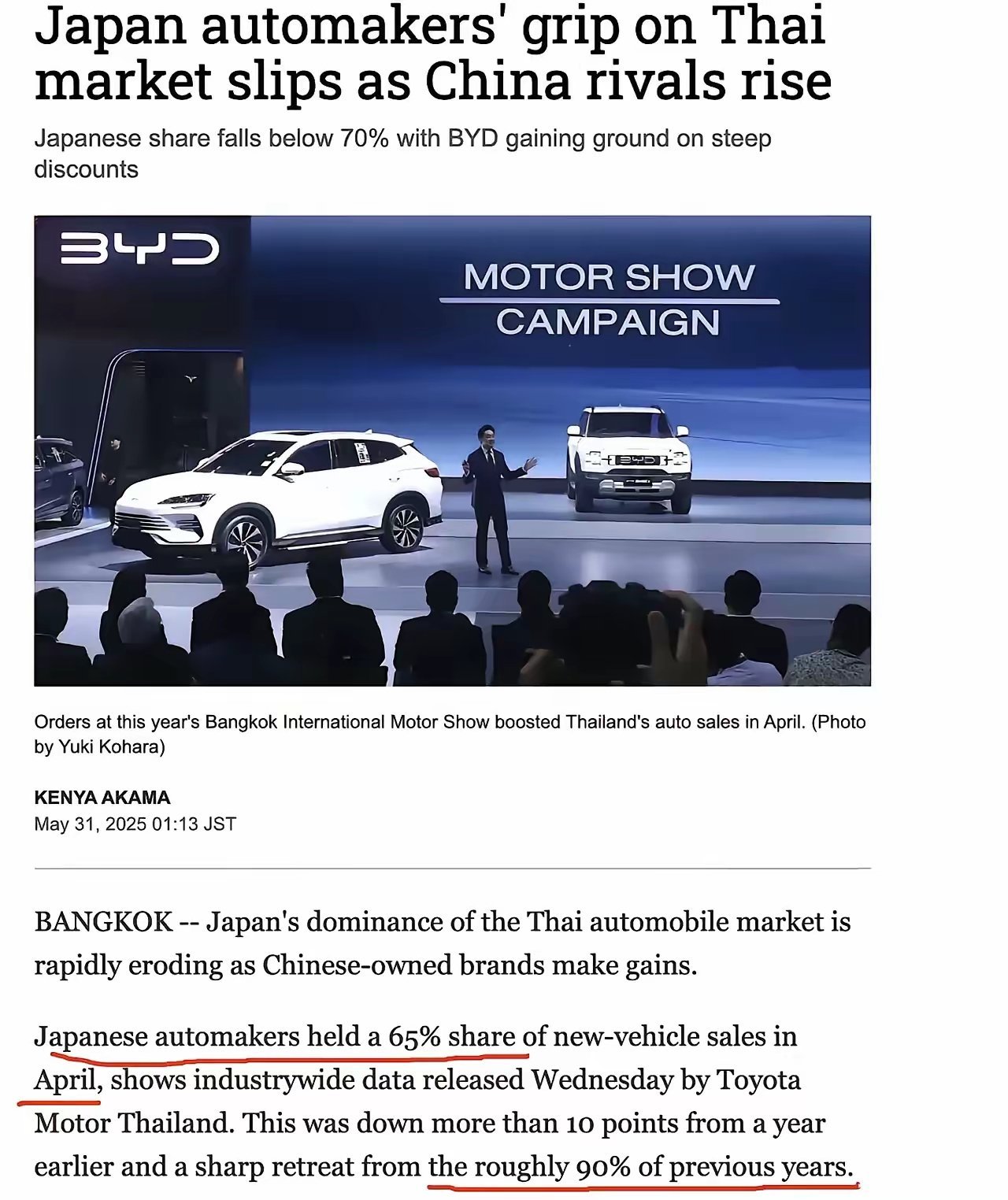 泰国失守!印尼告急!日媒的哀嚎早已藏不住。曾垄断东南亚近90%市场的日系车“后花园”,正被中国车企强势攻破。2022年比亚迪入局,成为关键分水岭,日系在东南亚躺赚的日子,彻底画上句号。这不是简单丢份额,而是根基动摇。回看中国市场更刺眼:2020年日系占比23.1%,2025年已跌破10%,仅剩9.8%。五年腰斩再腰斩。昔日“省油耐用”的神话,在中国新能源车的降维打击下,彻底破碎。大v聊车