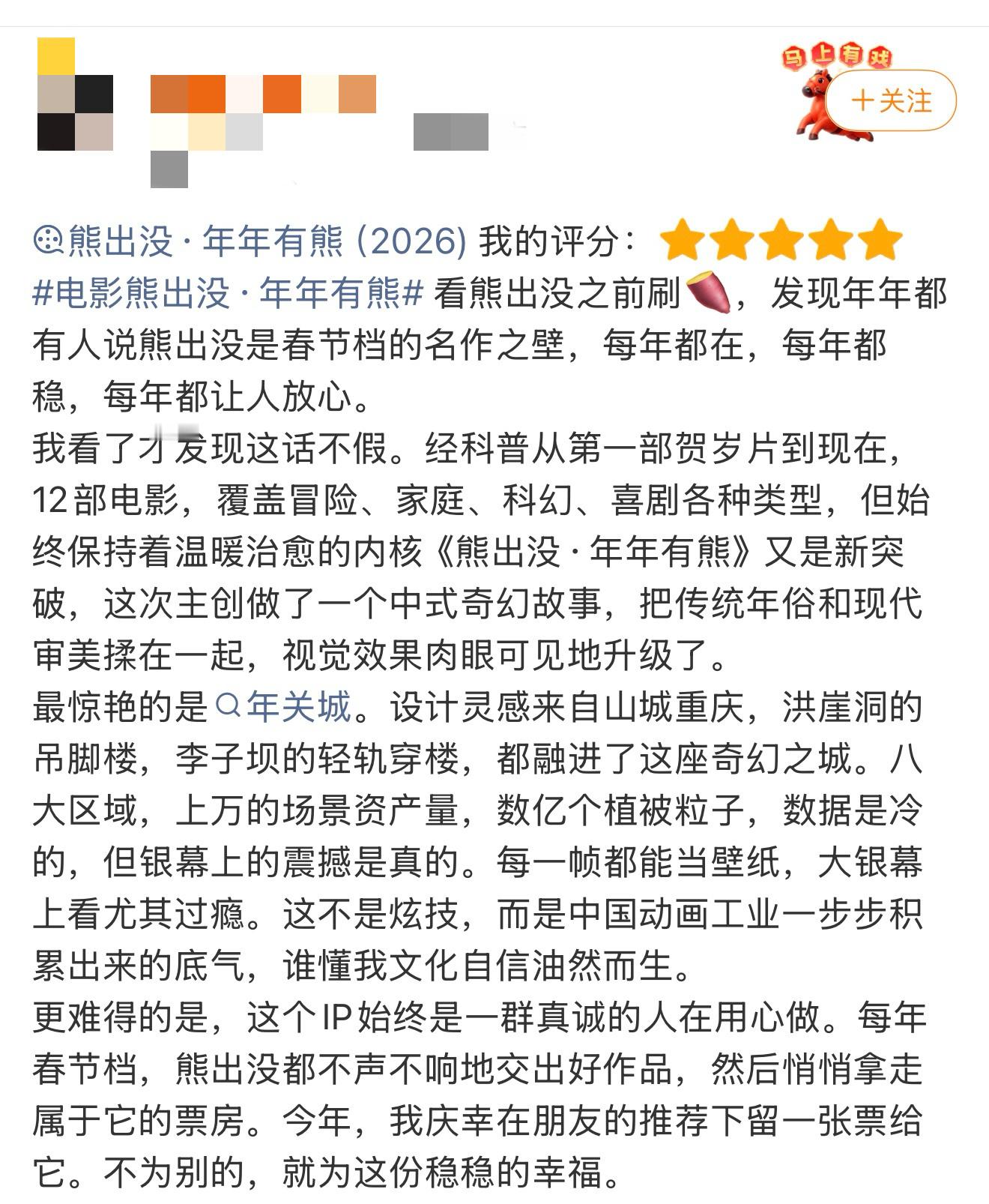 熊出没 春节档名作之壁别人在争票房,它在守江山。熊出没用十二部作品证明:真正的名作,不需要对标任何人。当春节档的潮水退去,只有这三人组,始终是那片最稳的“基本盘”