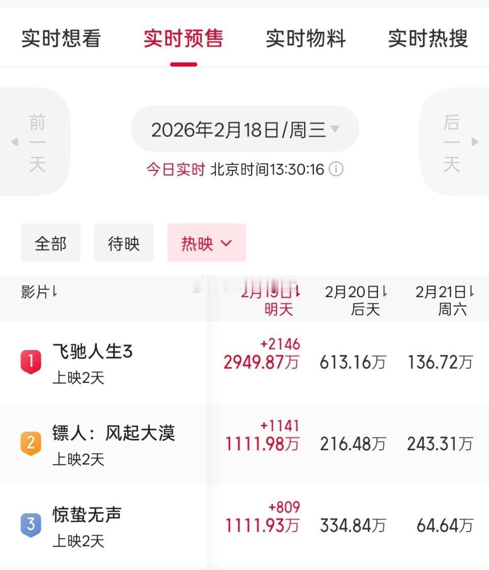 镖人明日实时预售票房来到了第二,只要保持趋势下去,预测票房只会上涨。