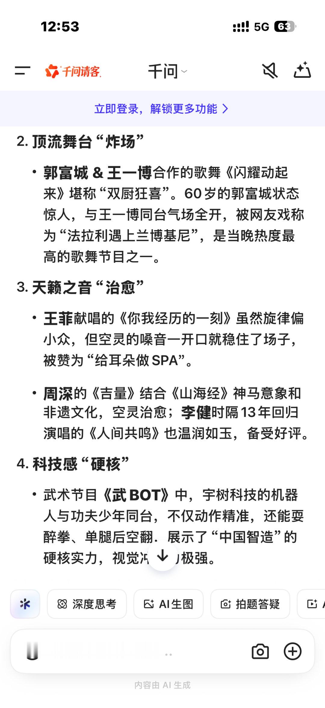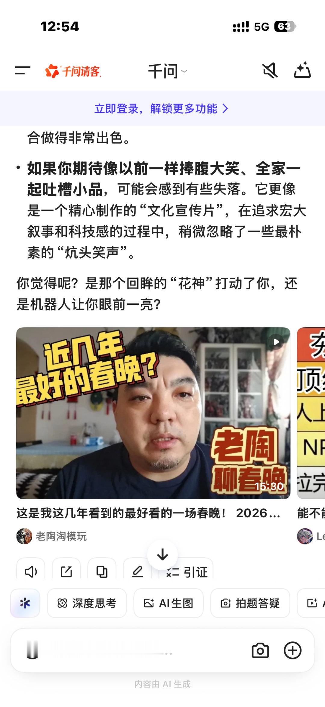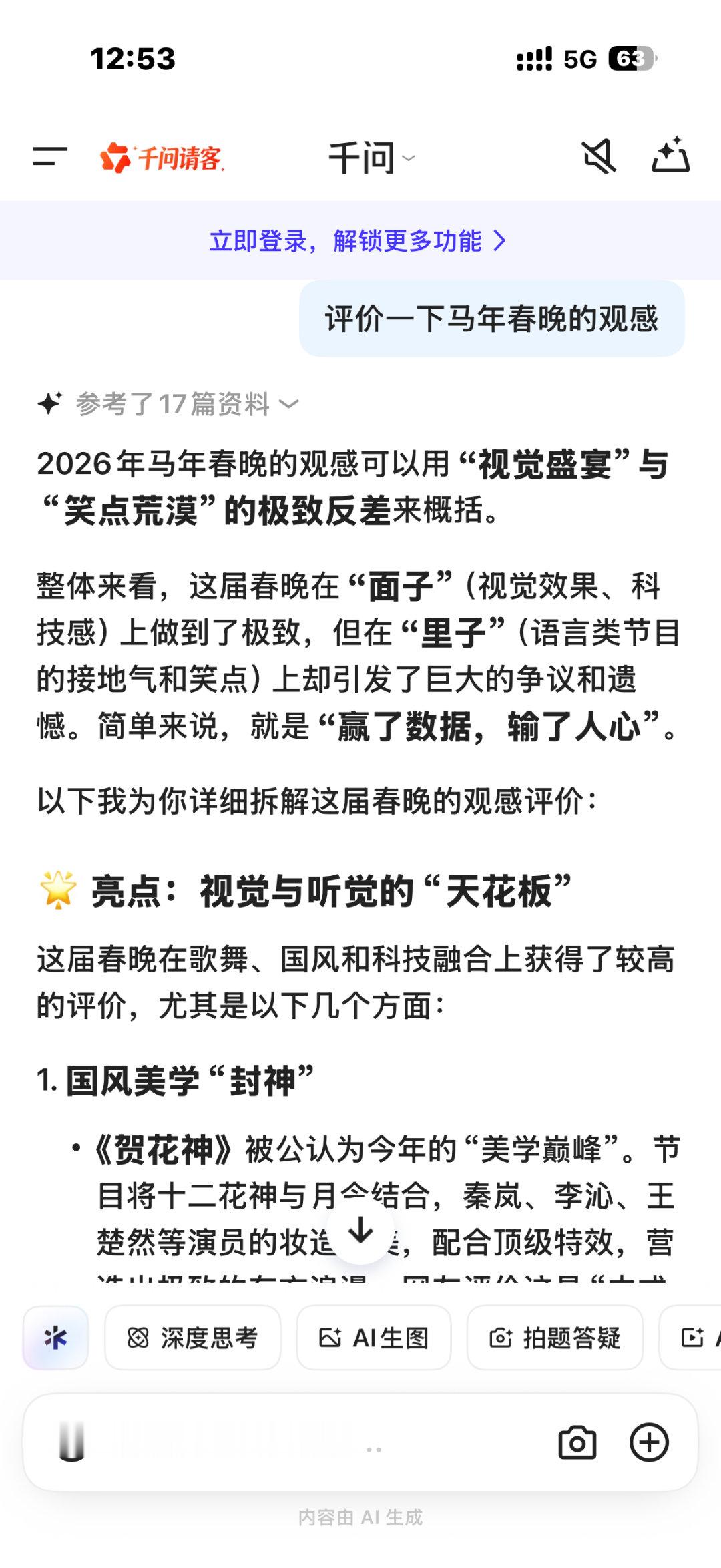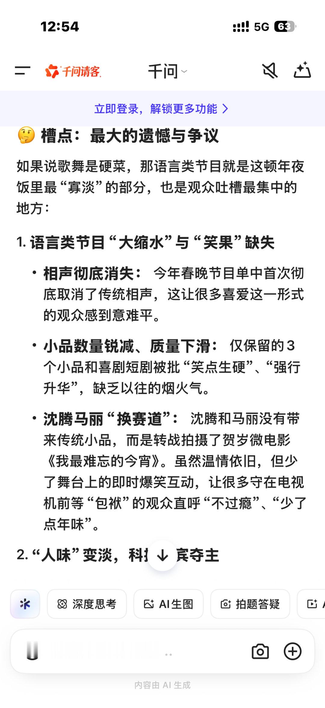 我AI聊春晚 千问的回答非常中肯,点出了优点,也提出了不足。