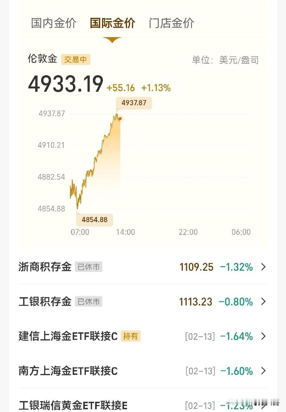 黄金早上跌到4854了, 看样子今天也涨不到4950, 可惜国内都在辞旧迎新走亲戚,休市了,错过一个加仓机会。 黄金现在价格不稳,上窜下跳,对于我们来说也好,有机会入手,有机会出手。 跌到4900美元以下就可以加仓,因为今年大概会在5000以上浮动。 如果在4900以下买入,赚不赚钱至少不会亏本,能晃悠到5000以上的机会大把。