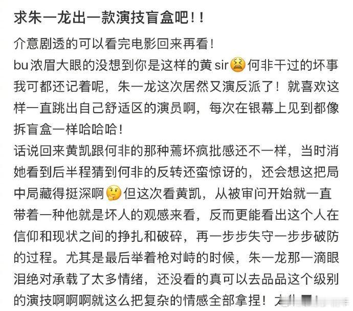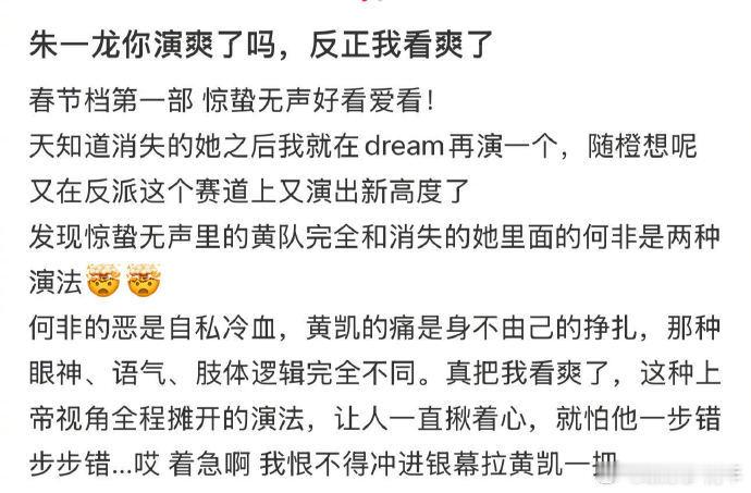 朱一龙反派图鉴再添一席真的被朱一龙的演技震撼到!《惊蛰无声》里黄凯的挣扎太真实,坚守与欲望的拉扯、自尊的破碎,每一层情绪都处理得恰到好处,和《消失的她》里何非的缜密算计形成鲜明对比,两种反派两种演法,实力诠释反派也能有万种情绪!