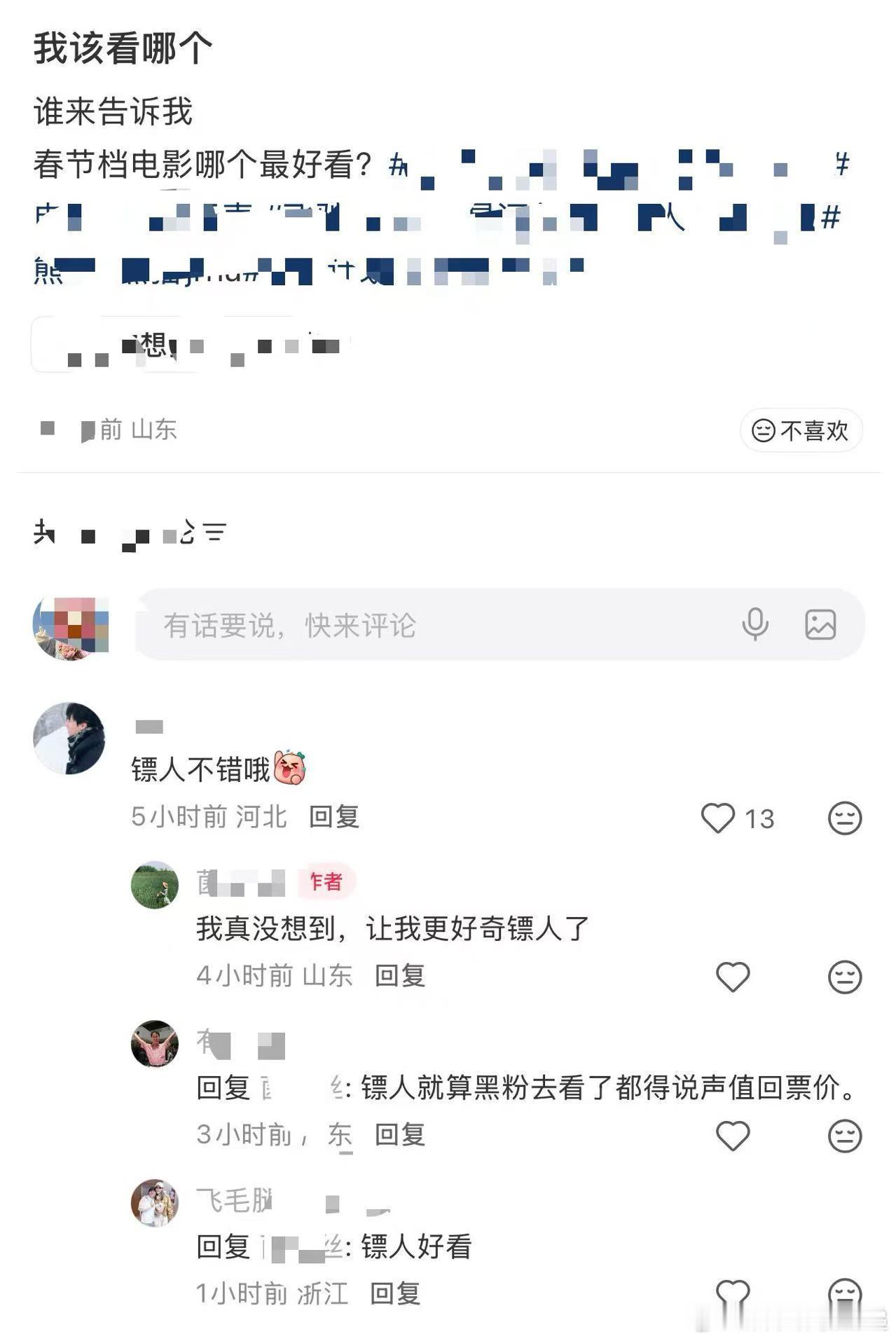 镖人自来水申请加入护镖小队 镖人自来水大军集合了!春节护镖人小队一路镖镖镖,看完的都染上一身镖味。打戏精彩故事带感,吴京必须立刻安排第二部,长安篇续上。