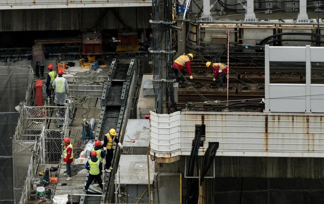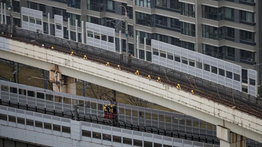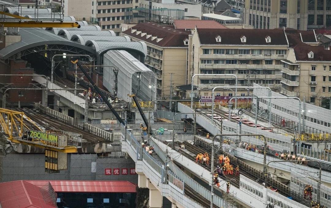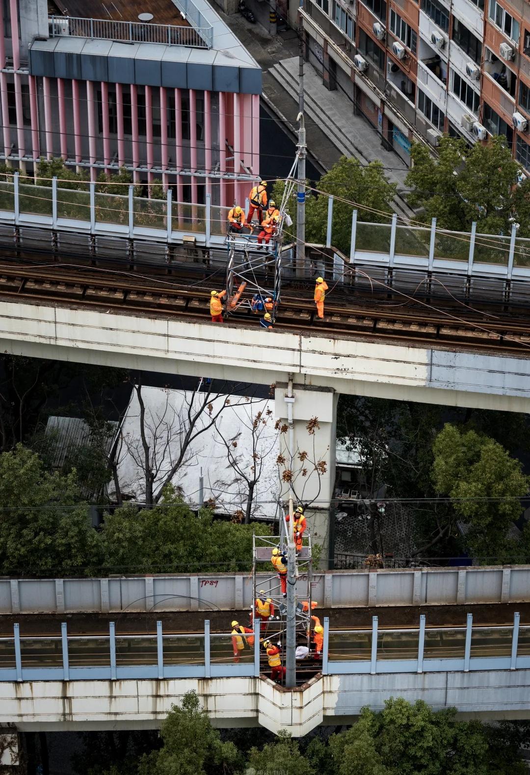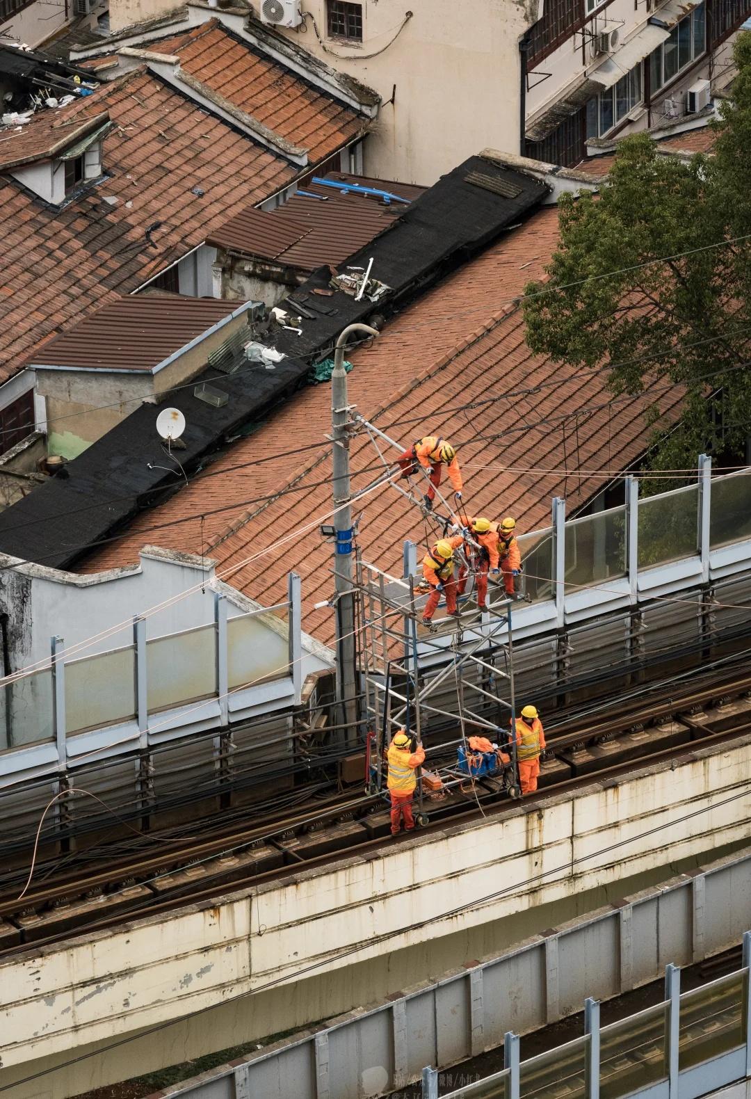 千家万家团聚日 换梁拨接进行时 除夕佳节当天的蒙蒙细雨中,宝山路站改造换梁作业正在紧张进行中。 摄影日常 上海地铁 上海地铁3号线 上海地铁4号线 拍火车