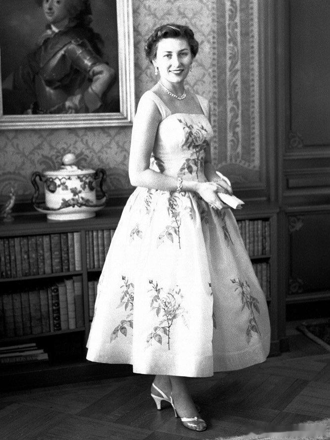 老照片 分享挪威公主阿斯特里在拍摄25岁生日官方照时身穿的小礼服,该裙由挪威本土时装学校&服饰制造商Märthaskolen所制,其玫瑰及蓬蓬裙元素参考了法国高定品牌Givenchy为好莱坞女星奥黛丽·赫本(图4)出演《欢乐满人间》时所穿的戏服,两者只是在肩带设计和玫瑰图案的数量上略有差异,两款的质感和穿着效果都很出众。
