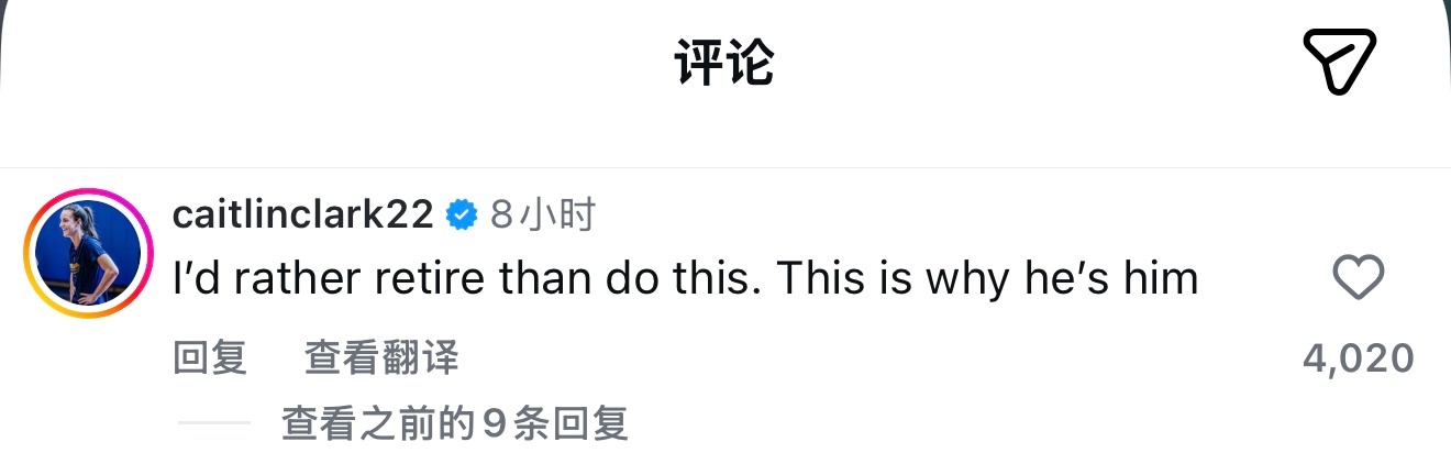 WNBA球星凯特琳·克拉克留言表示:“我宁愿退役也不会这么做,这就是他是他的原因。”