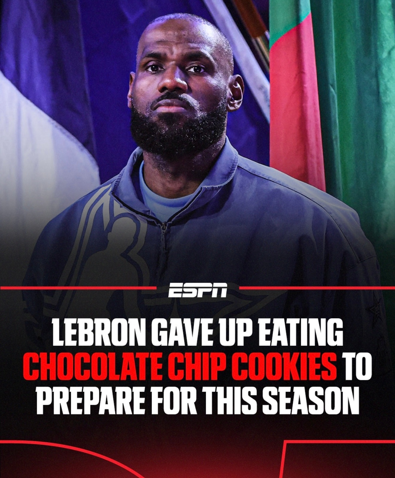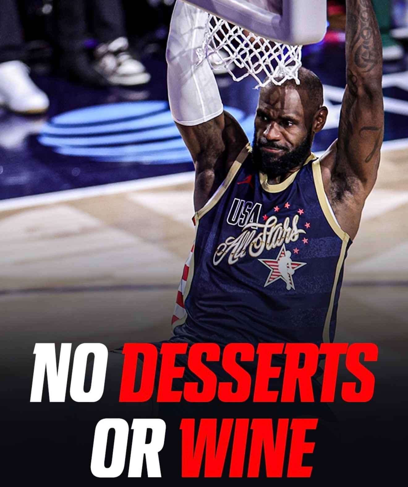 詹姆斯在播客节目中表示,赛季初的11月和12月,自己完全戒掉了最爱的红酒和甜品。