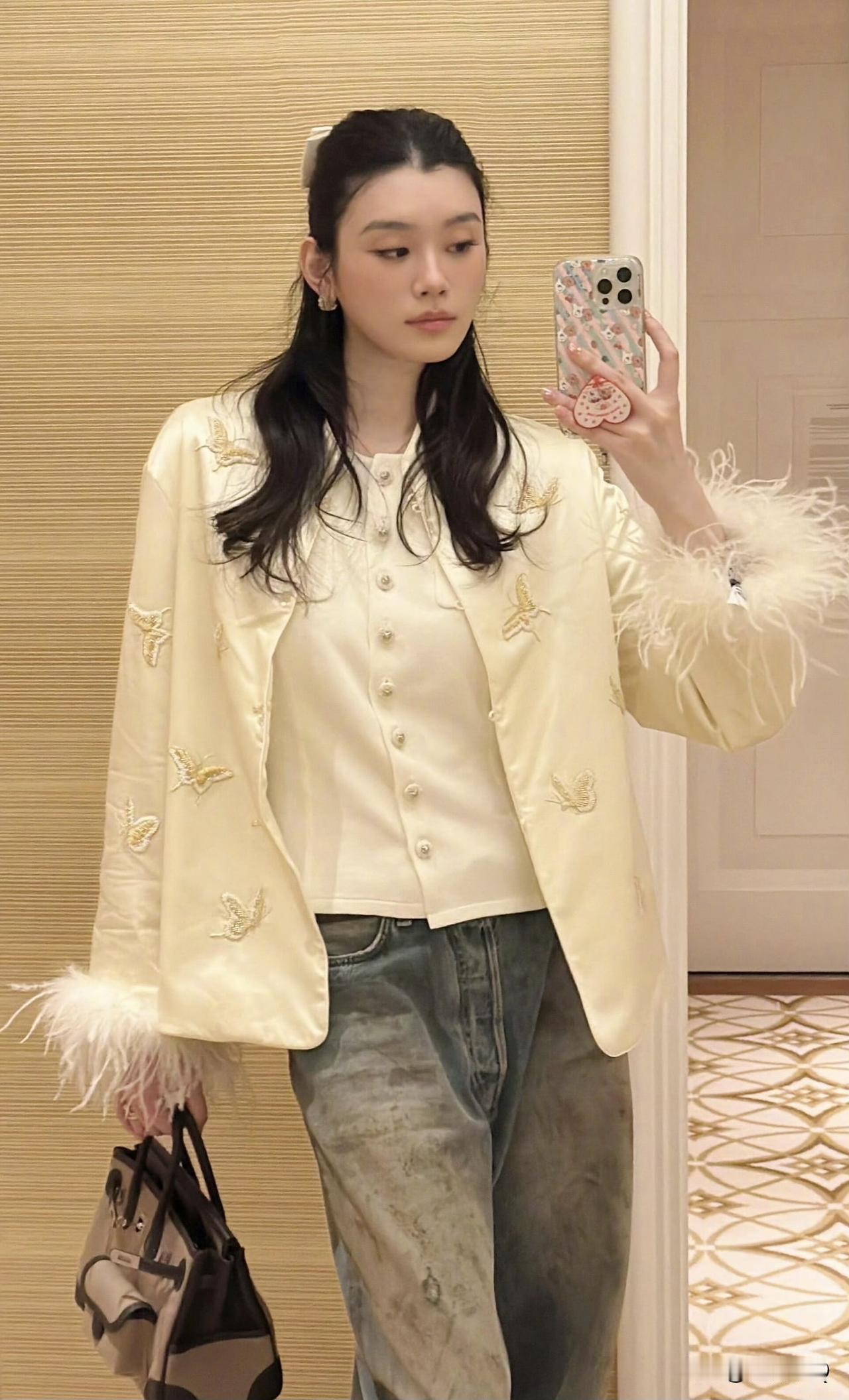 奚梦瑶上半身搭配挺好看的,就是这条脏脏裤一出镜,实在让人欣赏不来。