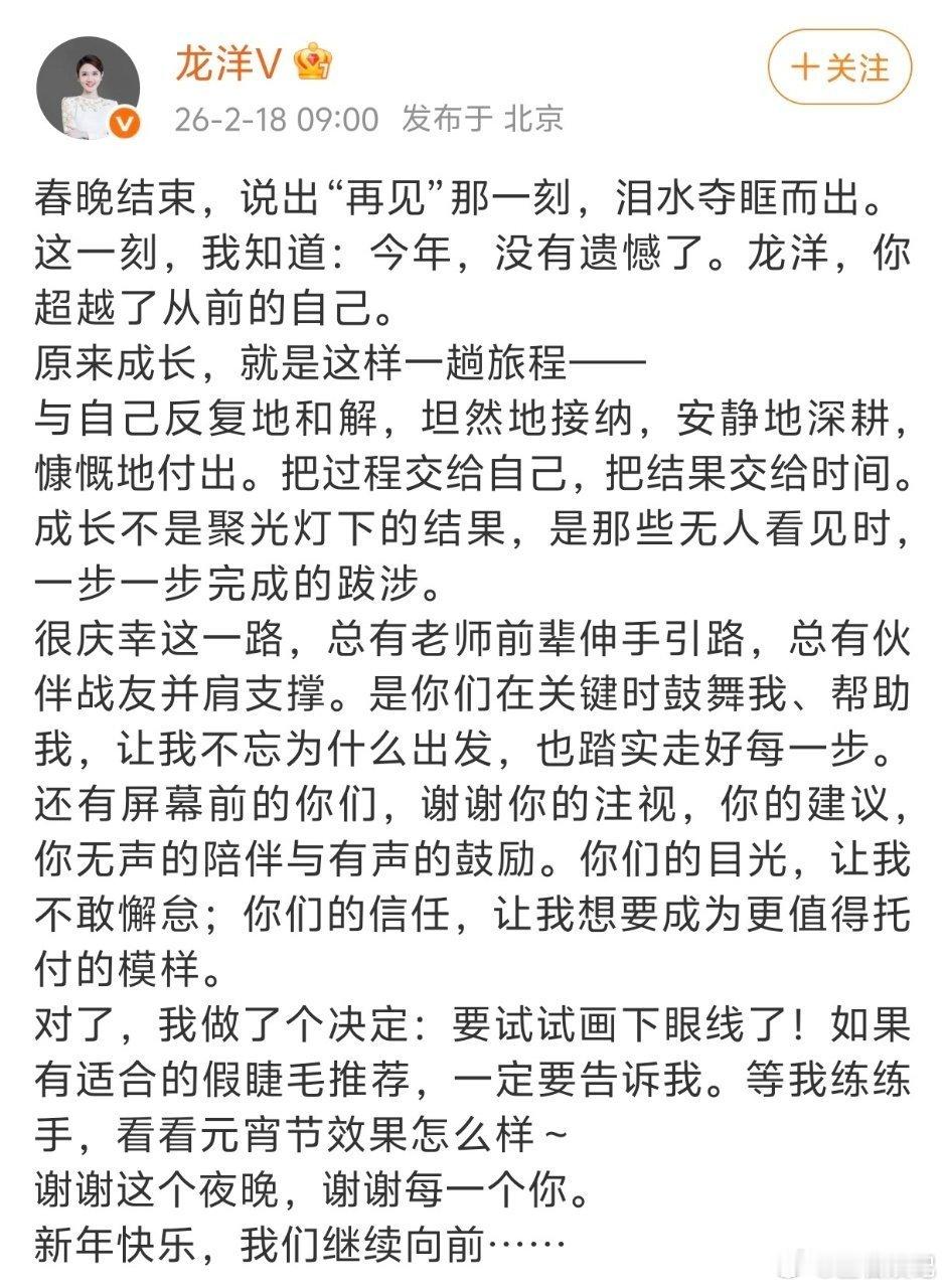 龙洋回应画下眼线 镜头前端庄大气,镜头后真诚可爱,业务能力在线的龙洋,值得所有掌声。