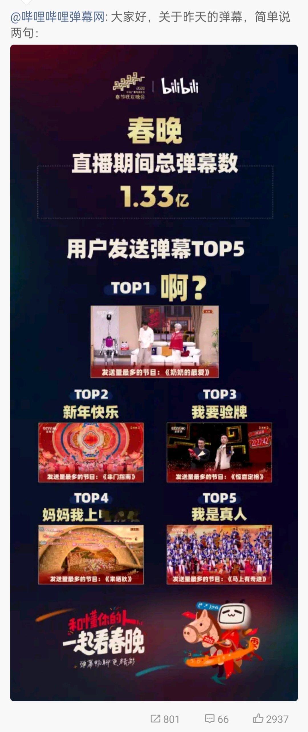 这是春晚期间,B站直播间最多的弹幕。嗯,我要验牌