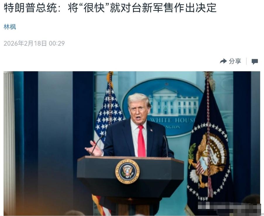 特朗普这一次终于直面中美关系最大的挑战了! 2月17日,美国总统特朗普表示,他将“很快”就可能向台湾出售新一批武器作出决定。他已就此问题与中国进行了沟通。我们正在讨论这个问题。我们有一次很好的交谈,我们将很快作出决定。很显然,特朗普这一表态意味着什么呢? 这不是普通的外交表态,而是把中美关系里最敏感、最核心的台湾问题,直接摆到了谈判桌上。 过去美国对台军售,大多是悄悄推进、事后官宣,刻意淡化与中方沟通的痕迹,避免把军售变成双边正面博弈。 这次特朗普主动公开“已和中方沟通、将很快决定”,等于承认对台军售不再是美国单方面说了算,而是必须面对中方立场、承受双边关系压力的重大选择,这也让他不得不直面中美关系最核心的挑战。 从现实层面看,特朗普的表态,是典型的务实博弈思路。一方面,他想借军售兑现对国内军工复合体、对台相关势力的承诺,同时把军售当作外交筹码,捆绑在经贸、高层交往等议题上。 另一方面,他也清楚台湾问题是中国核心利益中的核心,是中美关系不可逾越的红线,一旦贸然推进大规模军售,必然引发中方强烈反制,甚至影响他计划中的访华行程与双边议程。 这种既想捞取利益、又怕触碰红线的矛盾状态,恰恰说明他正在直面这个绕不开的难题。 回顾近期动向,去年12月美方刚批准超百亿美元对台军售,岛内也在推动高额防务预算,看似军售势头很猛。 但特朗普此次主动提及“沟通”“很好的交谈”,释放出明显的管控风险信号,说明美方清楚,在台湾问题上任性而为,代价远大于收益。 对中方而言,立场一以贯之:坚决反对任何国家对台军售,这违反一个中国原则和中美三个联合公报规定,干涉中国内政,损害中国主权与安全利益,也破坏台海和平稳定。 无论美方如何权衡,中方维护国家领土完整的决心不会动摇,任何越线行为都会得到坚决回应。 这一表态也戳破了“对台军售与中美关系无关”的谎言。台湾是中国不可分割的一部分,不是美国博弈的棋子,更不是美方用来换取利益的工具。 特朗普把军售放进中美沟通议程,本质上是承认这一问题的敏感性与严重性,也意味着美方必须承担相应的政治后果。 对普通民众来说,这件事很直白:大国博弈里,核心利益没有妥协空间,美方每一步都要掂量后果,而中方的底线始终清晰明确。 说到底,特朗普此次公开表态,是把中美关系最大的挑战摆上了台面。是尊重中国核心利益、推动双边关系稳定,还是执意挑衅、破坏互信基础,接下来的决定就是试金石。 中美关系要行稳致远,必须守住台湾问题这条红线,这不是选择题,而是必答题。 信息来源 1. 彭博社:当地时间2026年2月16日特朗普在空军一号上对台军售表态 2. 中华人民共和国外交部:美国对台军售官方立场与反制声明 3. 新华社、中国新闻网:中美高层沟通及中方涉台军售权威报道