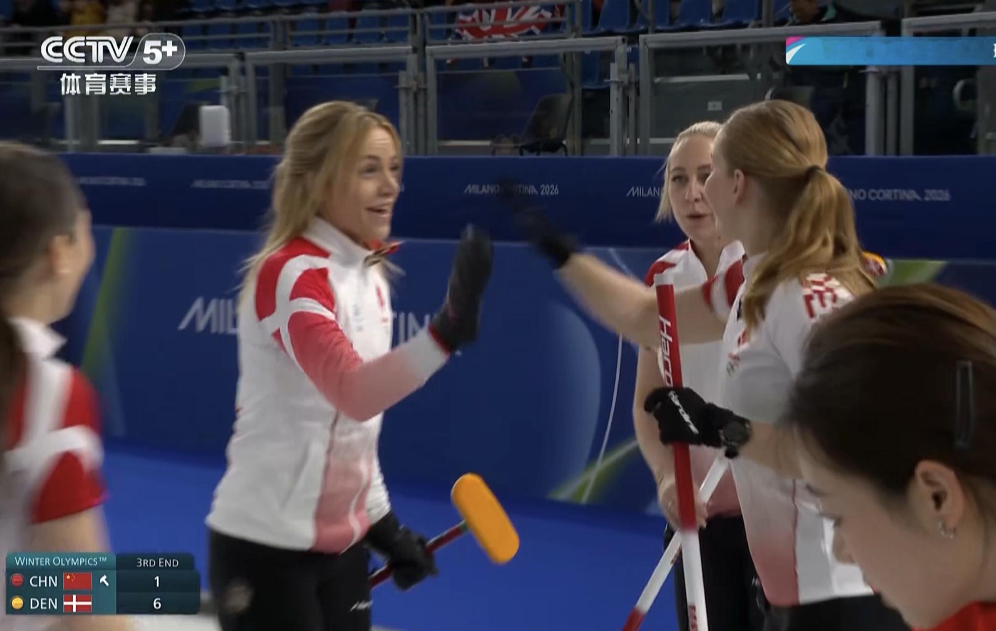 1-6落后了!这局丢了4分! 中国冰壶女队vs丹麦