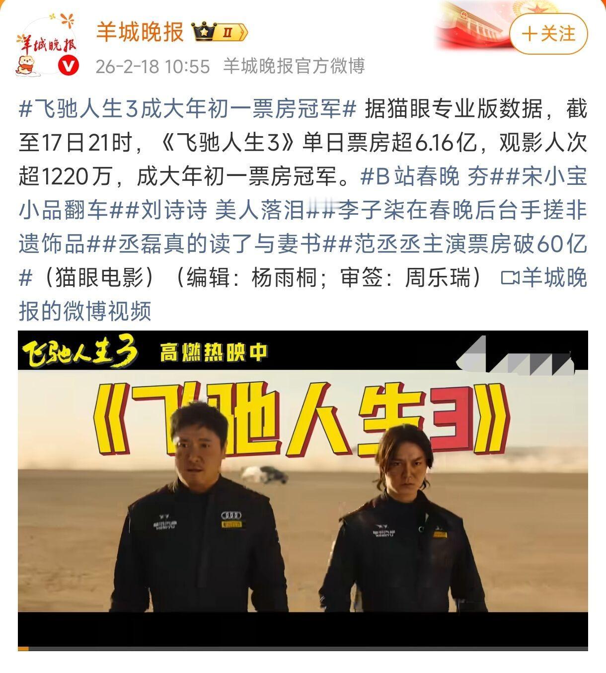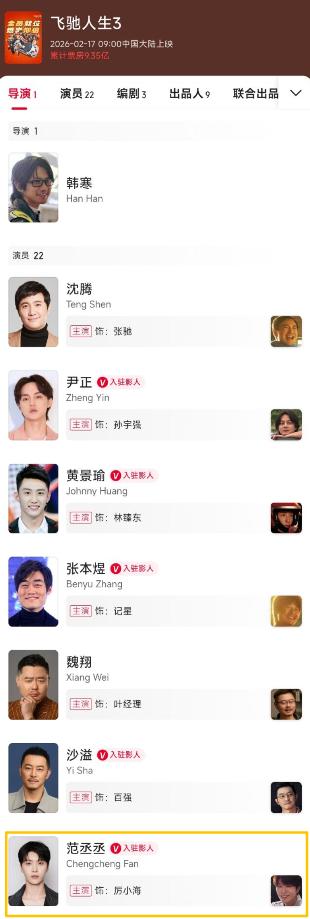 范丞丞主演的电影票房突破60亿了,猫眼显示他主演的电影目前已经上映和正在上映的有7部,大家看看这个60亿算实至名归吗? 《飞驰人生3》,7番 正在热映,累计票房9.37亿(截止到截图时); 《浪浪人生》,2番 2025年9月上映,累计票房4.57亿; 《扫黑·决不放弃》,3番 2024年6月上映,累计票房1.92亿; 《飞驰人生2》,2番 2024年2月上映,累计票房33.61亿; 《人生路不熟》,2番 2023年4月上映,累计票房11.84亿; 《了不起的夜晚》,1番 2023年3月上映,累计票房4687.9万; 《门锁》,3番 2021年11月上映,累计票房2.42亿;
