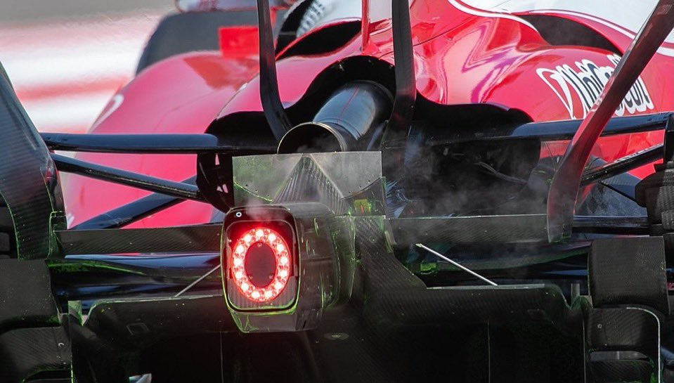 法拉利在今天的测试当中,在赛车的排气管后方使用了一个小型翼片,并迅速引起了其他竞争对手的注意。