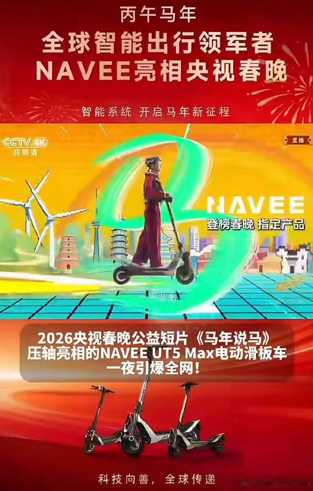 中国智造从科幻走进现实NAVEE春晚同款滑板车新年一马平川NAVEE亮相春晚,解锁出行新想象!中国智造打破次元壁,让科幻照进日常。马年伊始,愿你脚下生风,人生旅途一马平川!