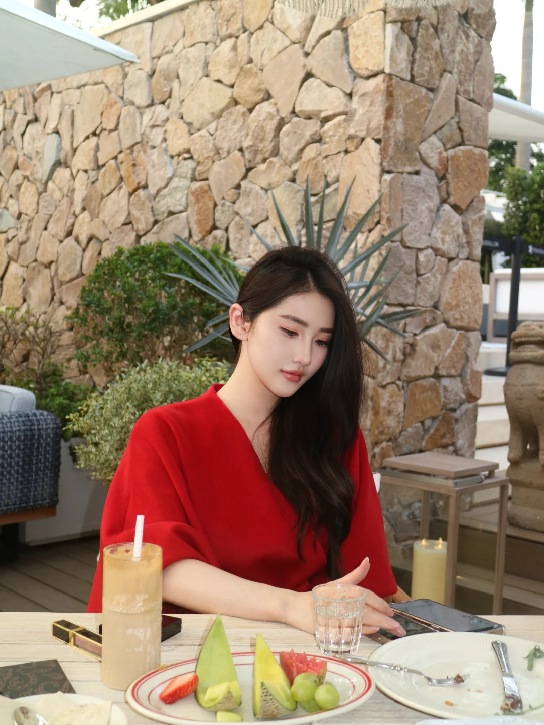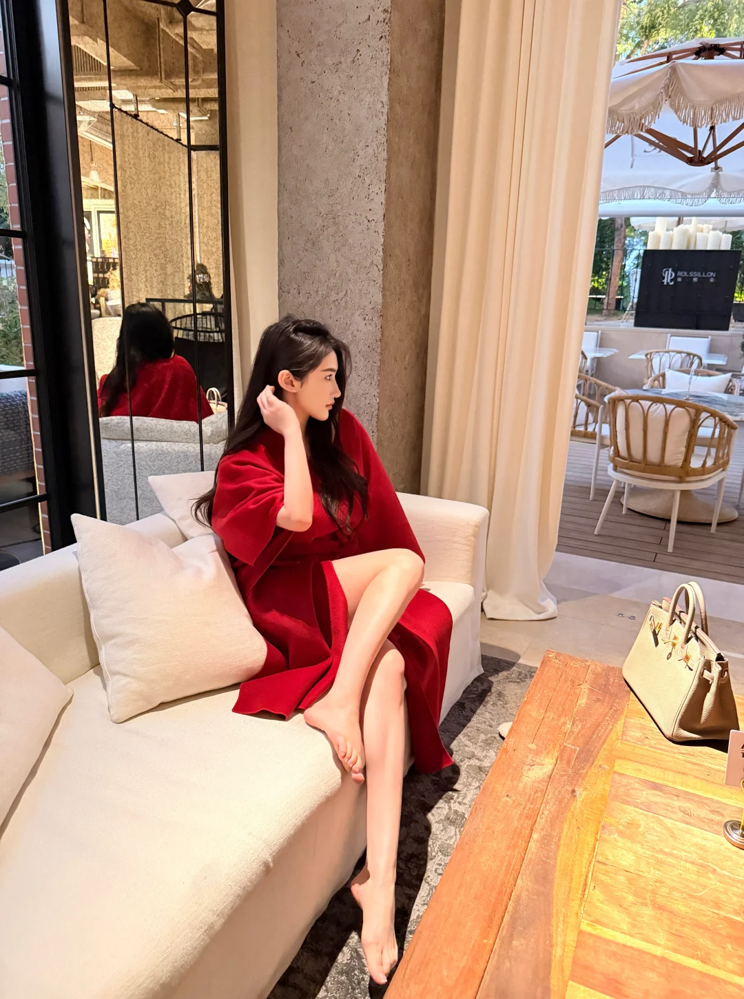徐璐皮肤真的白到离谱。冷白皮直接自带柔光buff,连肩颈都透着通透的光泽感。完全