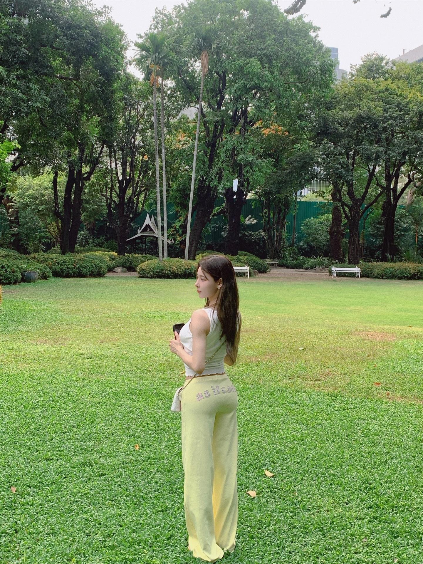 张天爱跟素人合影,胯真的好宽,大宅院似的