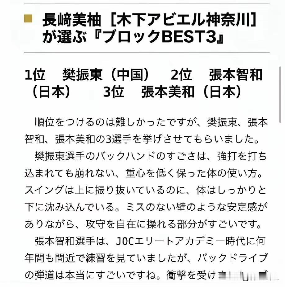 日本桌球王国评选,樊振东反手世界第一! 其次是张本智和、张本美和! 这个评选是桌球王国采访了众多教练和球员! 樊振东当之无愧的世界第一, 张本智和反手是世界第二也勉强, 但是张本美和第三肯定不是! 先不说男女力量差距, 咱们只看女乒, 从海口亚洲杯来说, 虽然张本美和反手速度和力量都已经强过鳗鱼, 但是鳗鱼反手旋转正好克制张本美和的速度, 所以目前来看, 张本美和的反手起码排在鳗鱼之后!