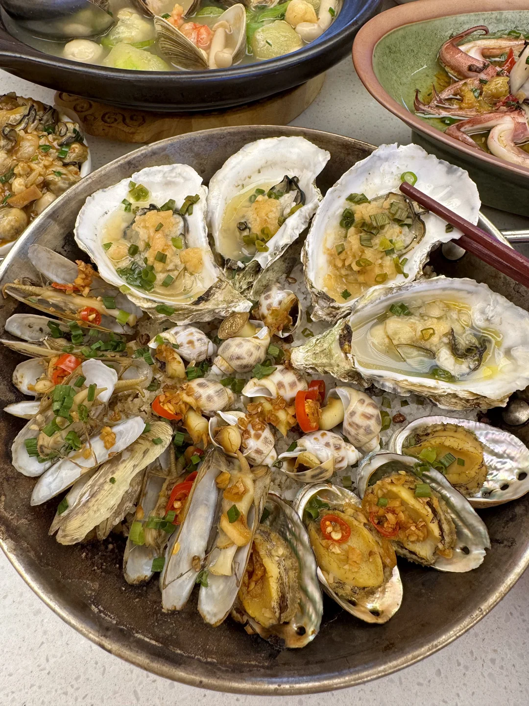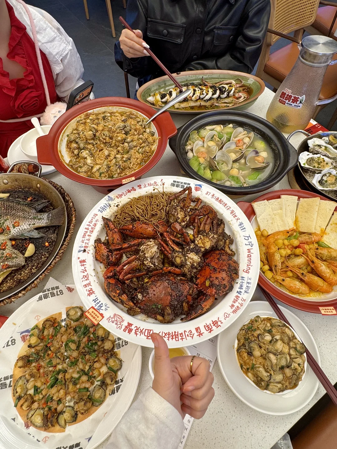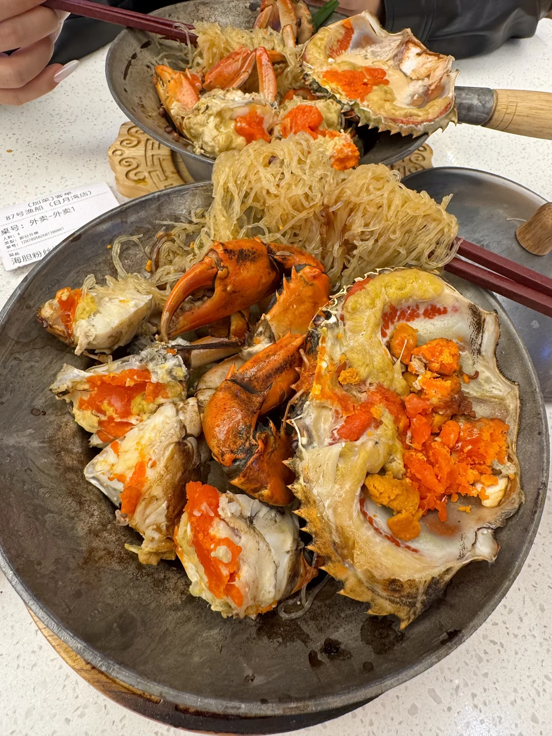 万宁日月湾冲浪🏄🏻♀️结束去吃了一顿very满意的海鲜!!大炒冰好香的嘞!!海胆粉丝焗膏蟹、海南黑胡椒炒蟹、蚝仔捞饭…肉眼可见的爽~