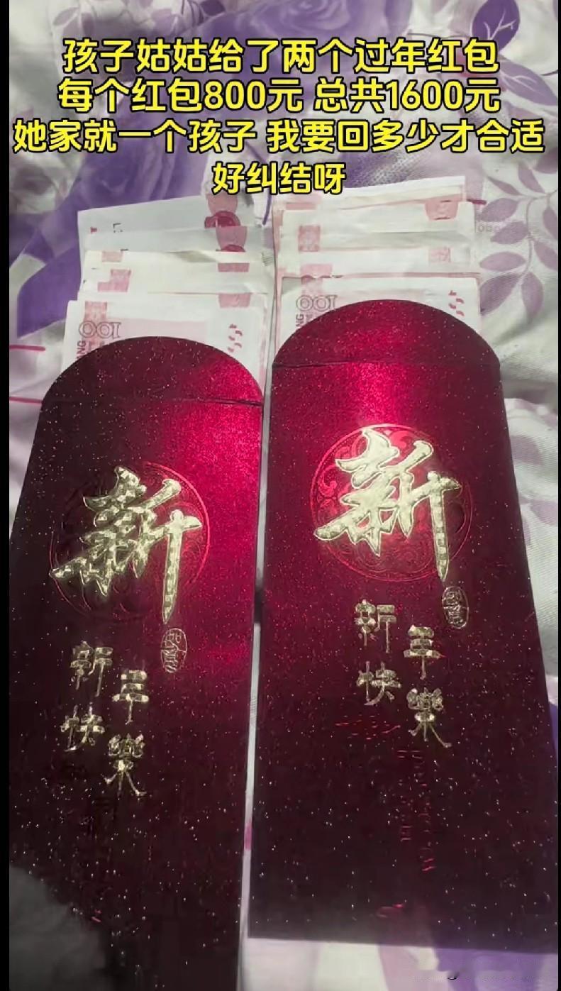 网友吵翻了:一女子发视频求助:孩子的姑姑给了两个过年红包,一个800元,两个就是1600元。但姑姑家就一个孩子,这个红包该怎么给呢? 对此有网友说:我从来不占任何人便宜,我家三个孩子,我小姑两个孩子,她一个孩子给200,我就还她一个孩子300,她给我孩子每人300,我就给她孩子每人500,她给我孩子每人500,我就给她孩子每人800。我姐家一个孩子,她给我家孩子每人100,我就给她孩子300,我弟家也三个孩子,每年她给我家孩子一人100,我也给他家孩子一人100! 也有网友说:我家两个孩子,他姑姑每人给二百,他姑家一个孩子,我直接给二百! 还有网友说:俺这大姑家更奇葩。俺家没娃儿时收我给孩子的压岁钱,俺家一个娃儿时说谁也不用给谁了,抵了。然后他家俩娃儿俺家一个时,又给俺家孩子压岁钱,然后我又给她俩孩子一人一份,然后我生了二胎然后人家又抵了。然后人家三胎来了,又给我家孩子,我该咋办? 说实在的过年最让人头疼的就是给红包的问题了,我婆婆都不让我带孩子出门就怕人家给红包,还礼是个问题。本来红包就是图个吉利,给孩子们压岁用的,多少就是个心意。 我们小时候就是5块10块的,现在红包都成了一个面子问题,给少了怕人家说,给多了吧又怕人家愁回礼。 之前我都是别人给100,我会多加20元回120元。我家两个孩子,如果人家只有一个孩子,他们给我家一人一百,我就回220元。现在谁给多少我就给多少,人家给两百,我就回两百,如果孩子比我少,我就全部包还给谁,不多也不少刚刚好就行了。 在给红包方面,我觉得全国都应该学学广东那边的,包个1块,5块,10块的,给娃讨个喜庆就行了,大家都一样,孩子收到高兴,大人也不用说担心回礼不够惹人不快。 而且包多了一般都是大人收走了,孩子们也没花到,转手又给别人了,也没啥意思。把红包给孩子,那么多钱又怕孩子乱花或者弄掉了,收孩子钱孩子也不高兴。 对此你怎么看?