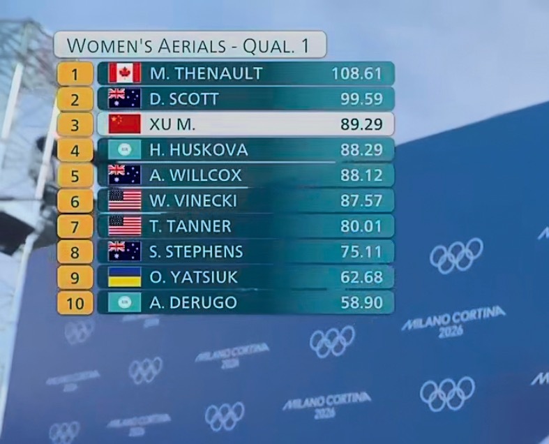 徐梦桃第5次出战冬奥会徐梦桃第一轮落地有些失误,得到89.29分,第一轮前六名可