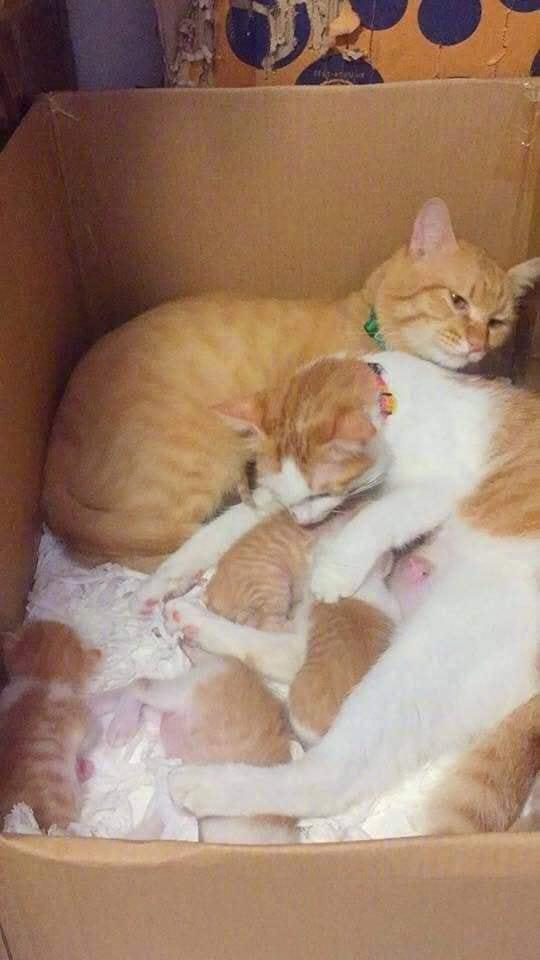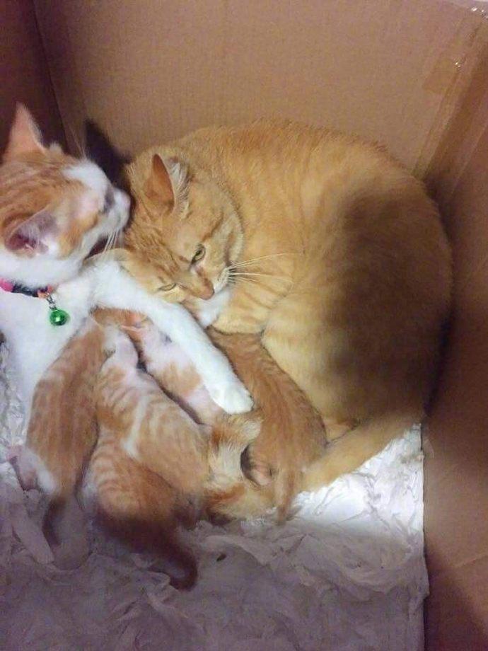 这只流浪猫咪被人们发现时身边还有好多只刚出生不久的小猫,很难想像在野外食物紧缺的