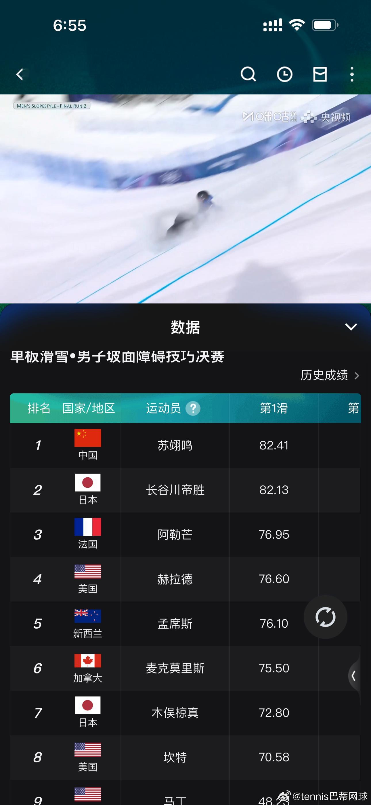 苏翊鸣第一滑82.41分米兰冬奥会
