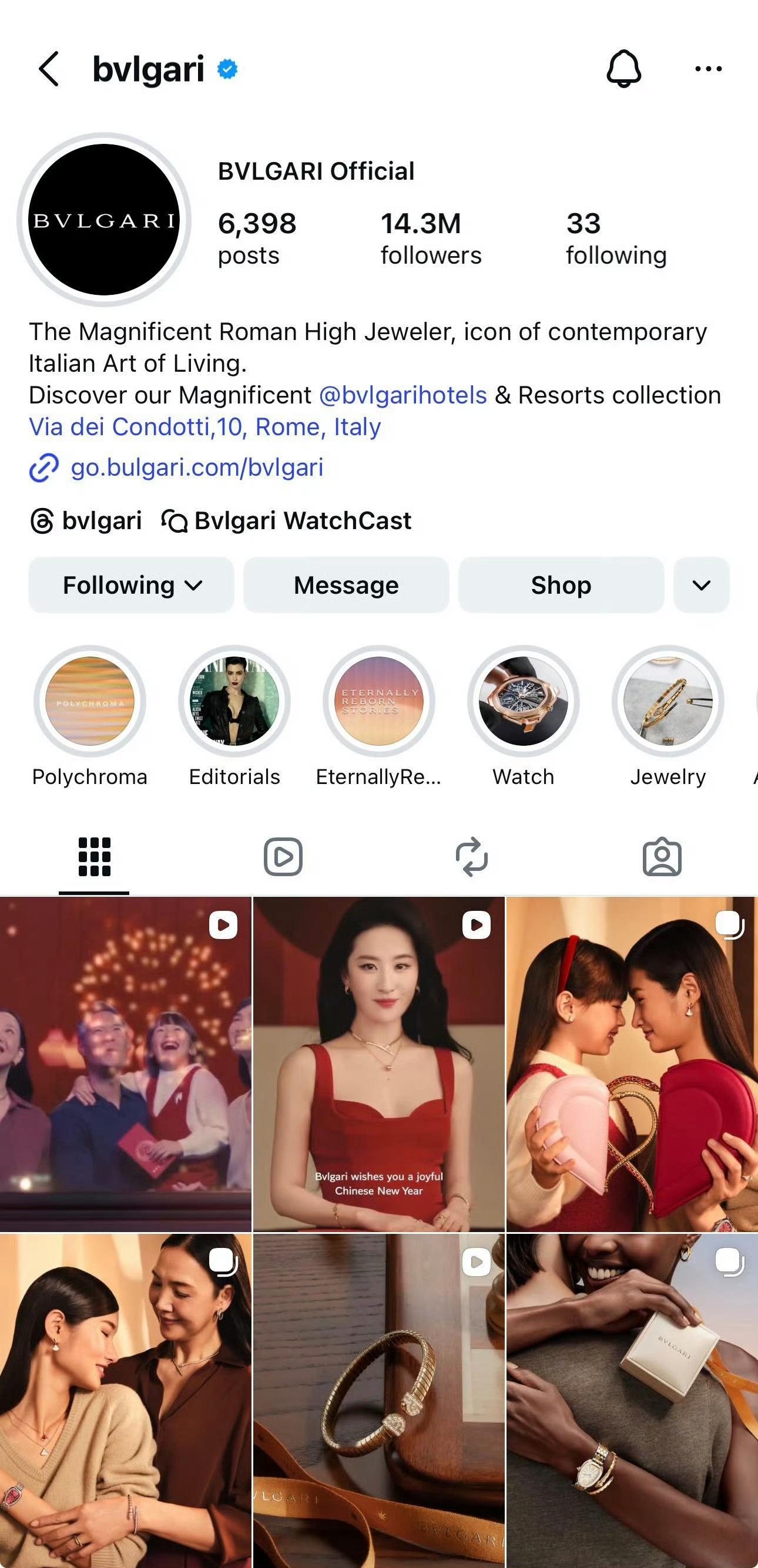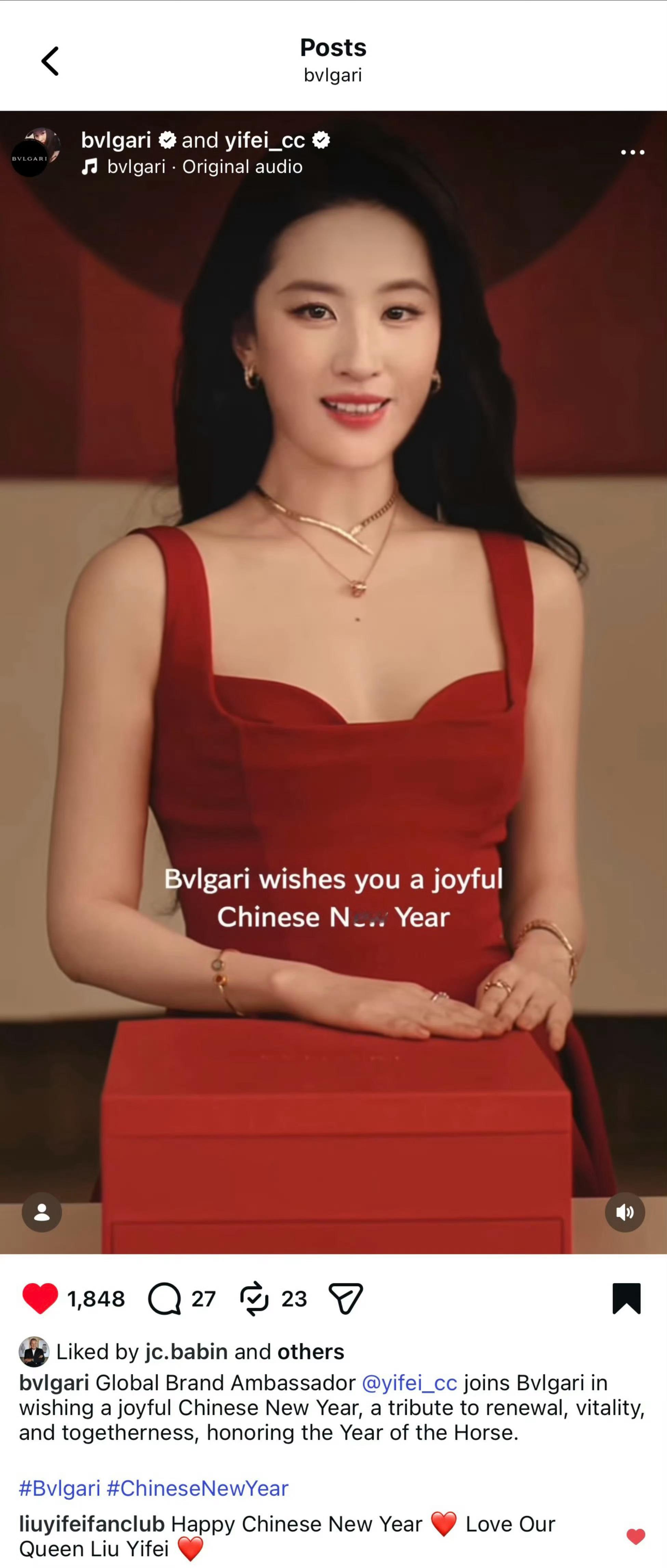 宝格丽女王刘亦菲🧚♀️唯一拥有全球广告的华人全球品牌代言人也是今年Bvlgari全球社媒唯一发布新春广的代言人宝格丽和天仙一起祝福全球Happy Chinese New Year这才是真正华人全球代的排面和实力