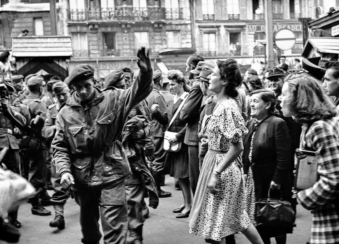 二战法国境内各国军队历史留影! 图一:1943年,法国北部,德军37毫米Flakzwilling 43高射炮的乘员们。 图二:1944年7月,巴黎,收到当地民众谩骂的盟军战俘。应该是之前盟军空袭后,他们有家人蒙难。 图三:1944年12月29日,法国福伊-诺特丹村,刚被击毁的德军豹式坦克。 图四:1944年8月19日,法国圣拉姆贝尔-叙尔-迪夫地区,向盟军缴械投降的德军士兵。看状态,他们心情不错,没沦为苏军俘虏是最大的幸运。德军影像 二战